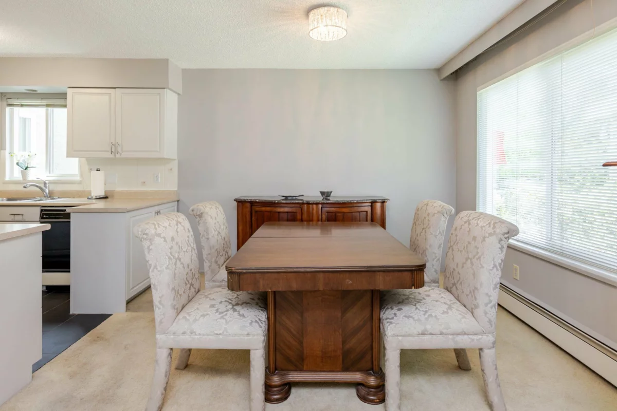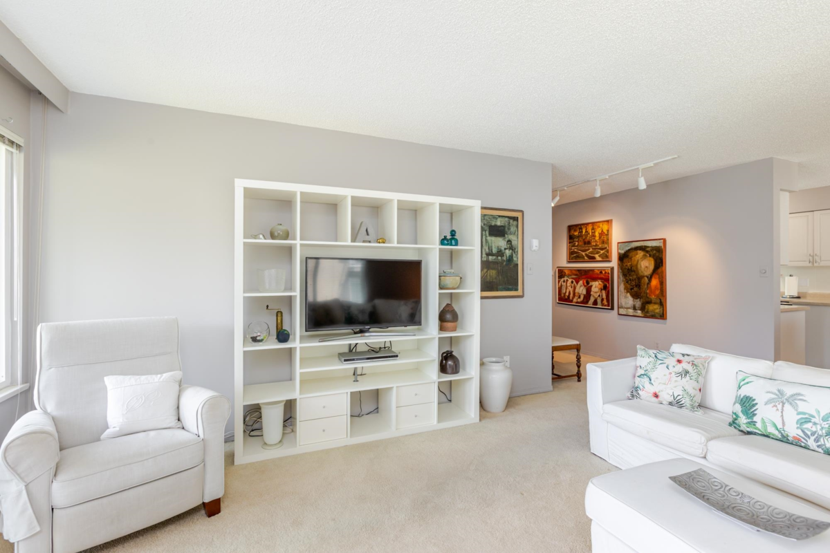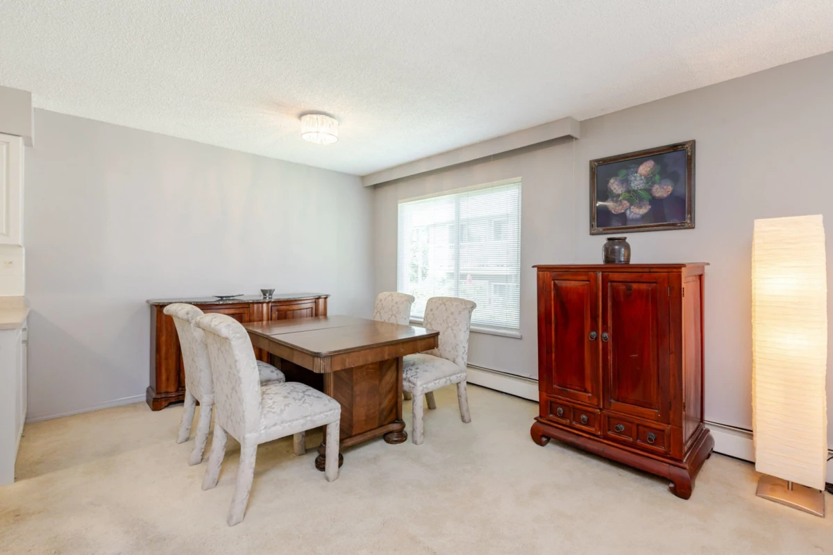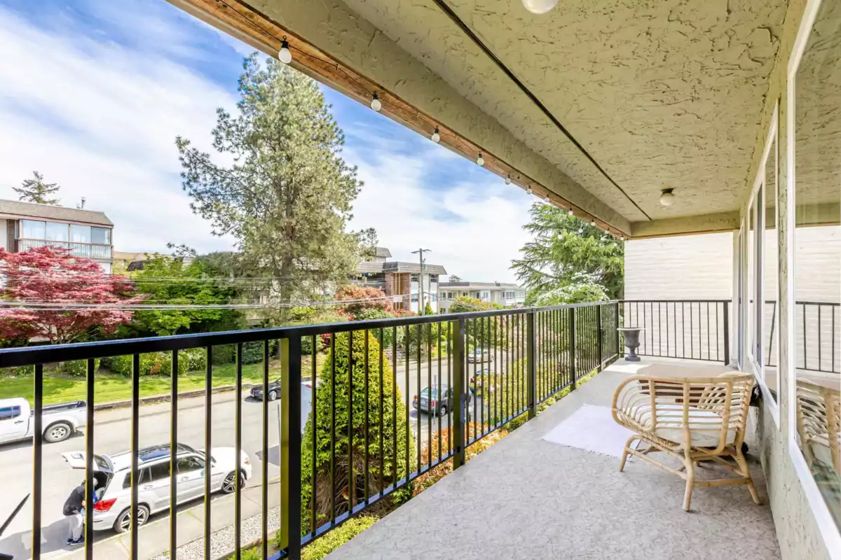 The DOGWOOD. Sought-after 55+ community in the heart of White Rock. Bright, sunny, top-floor end unit boasts a 28 foot long balcony perfect for sipping coffee and watching the sun rise. This large 1117 sq ft 2 bed/1.5-bathroom suite offers ample natural light and plenty of space to relax. It accommodates house size furniture making it great for downsizing. With in suite laundry, one parking stall and one storage locker included, you'll have everything you need. Bring your decorating ideas and enjoy the best of White Rock living with its beautiful beaches, shops, and restaurants just a short walk away. Plus, with easy access to downtown Vancouver, you can enjoy the best of both worlds. Strata fees cover heat and hot water. Pets allowed (2 cats or 1 small dog and 1 cat) Motivated Seller!