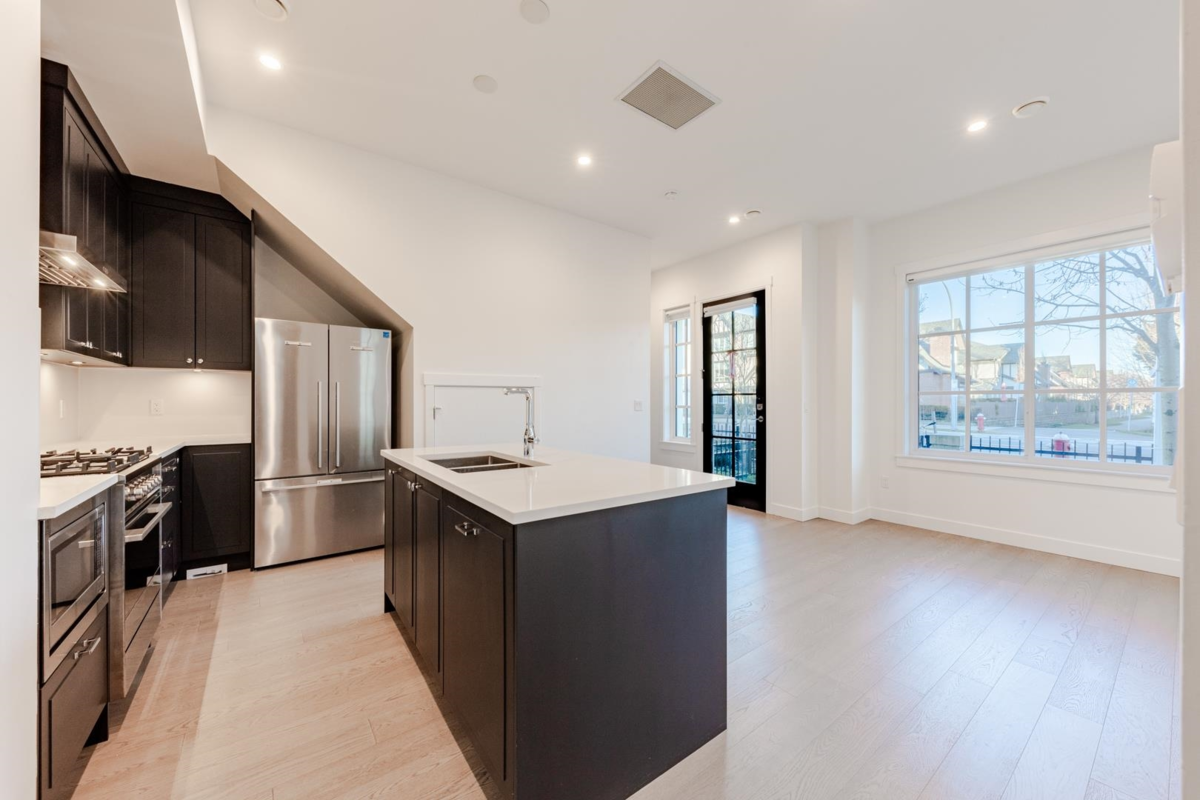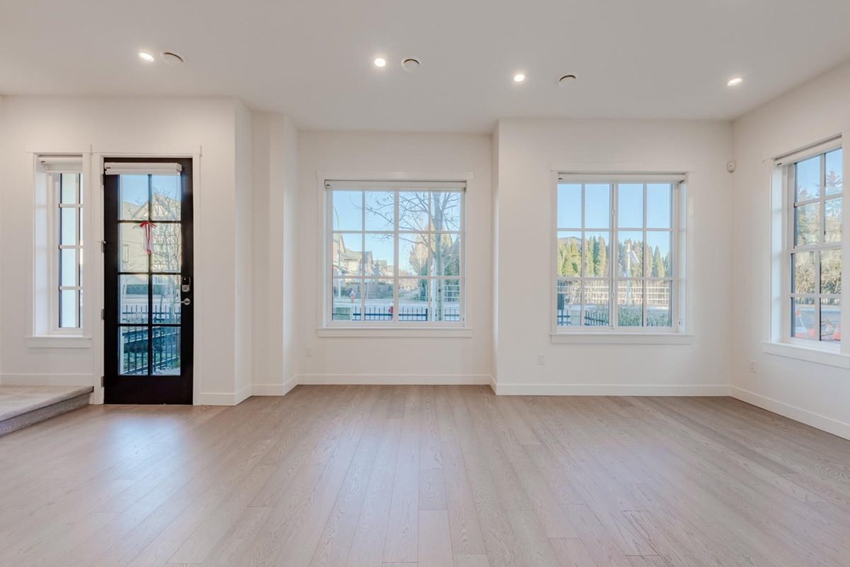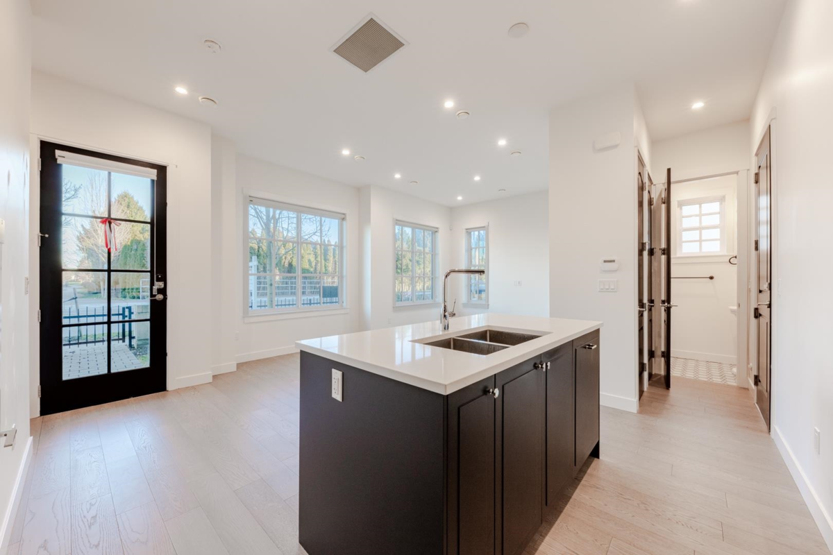 Step into the perfect home for a growing family with this stunning corner townhouse, featuring 3 bedrooms and 2.5 baths. Inspired by elegant French architecture, this residence showcases intricate moulding, signature black oval windows, detailed black metal railings, and decorative wood trims and dentils, all reimagined with modern interiors. Enjoy generous living spaces with soaring 10' ceilings in the foyer and 9'6" on the main level. Additional features include side-by-side double parking with EV charging, a spacious landscaped yard, a Smart Home System, and A/C powered by a heat pump. Ideally located within the catchment of top schools: a 9-minute walk to Steveston-London Secondary via a greenbelt trail and just 5 minutes to James McKinney Elementary
