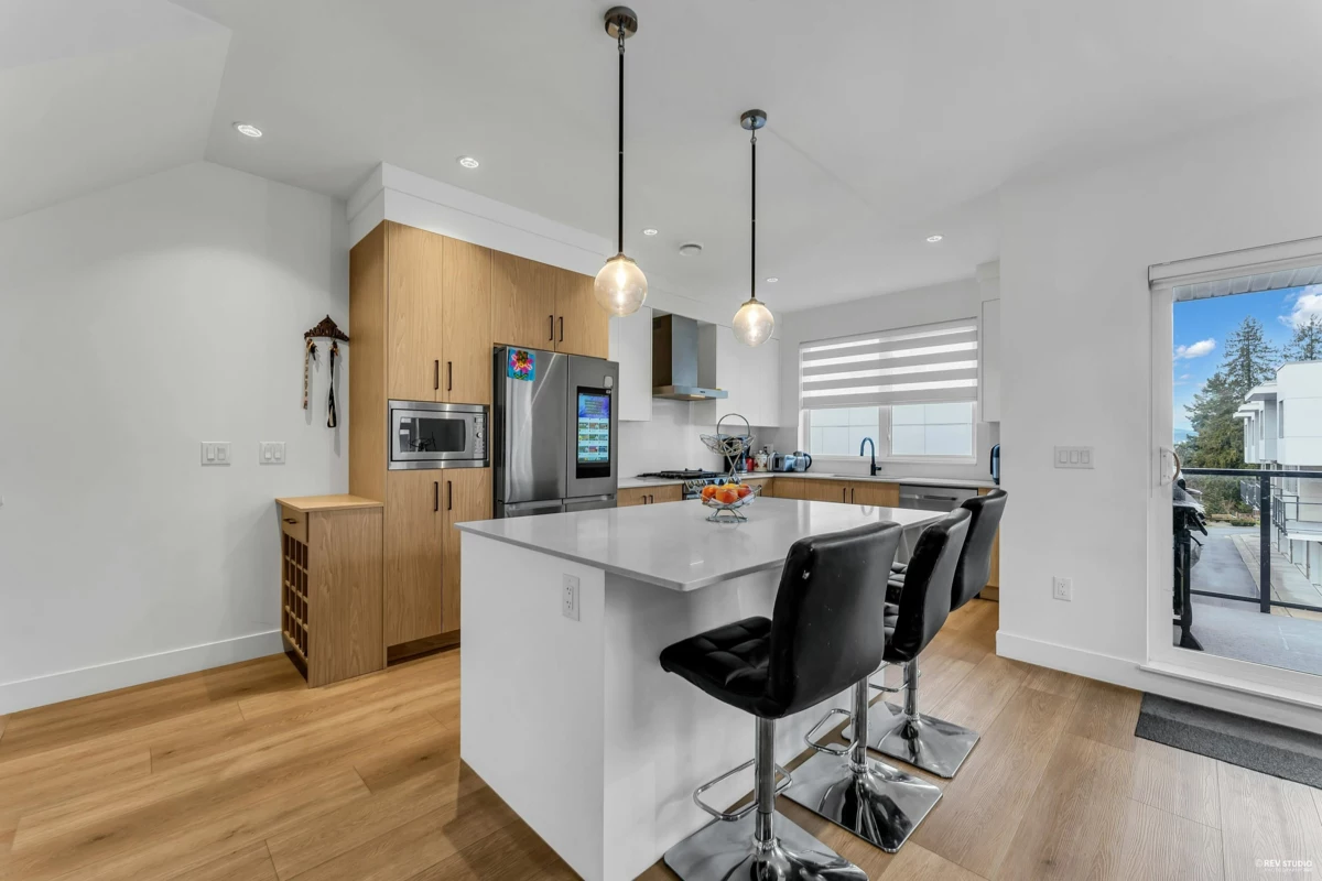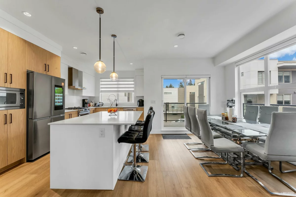 Built in 2023, this three-storey townhouse offers over 2,100 sq. ft. of living space in a convenient North Surrey location. Located approximately one block from bus routes and three blocks from SkyTrain, the home provides easy access to Surrey Central, Metrotown, and Downtown Vancouver. The main floor features an open-concept kitchen, dining, and living area. The home includes 4 bedrooms and 4 bathrooms, offering flexibility for family living or home office use. Additional features include air conditioning, a side-by-side double garage, visitor parking, and a professionally managed strata with clubhouse, exercise centre, and playground. Close to schools, shopping, and public transit.