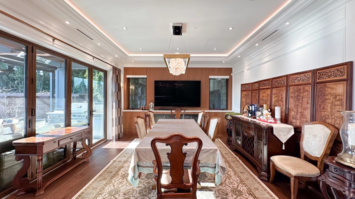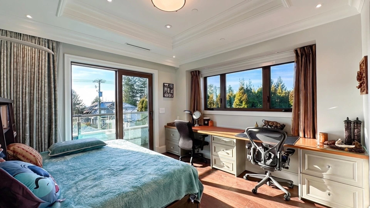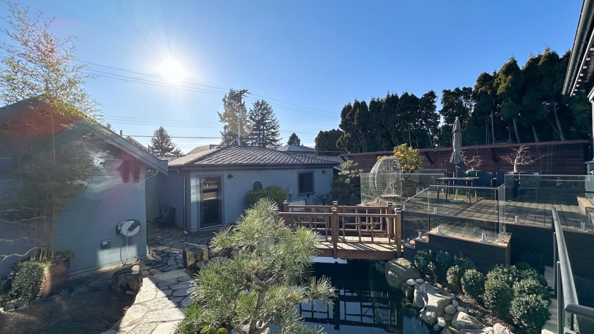 Exceptional 2023-built luxury residence on a 9,012 sq ft lot with nearly 6,000 sq ft of interior living space in prestigious South Granville. This stunning home offers 5 bedrooms in the main house, plus a separate laneway home, ideal for extended family or rental income. Features include a private movie theatre, custom bar, gym, sauna, pool entertainment area, wine cellar, and a boutique chef’s kitchen. The serene Zen-inspired backyard showcases a water pond and bridge, creating a private oasis. Includes 3 parking spaces and premium finishes throughout. A rare opportunity to own a resort-style estate on Vancouver’s Westside.