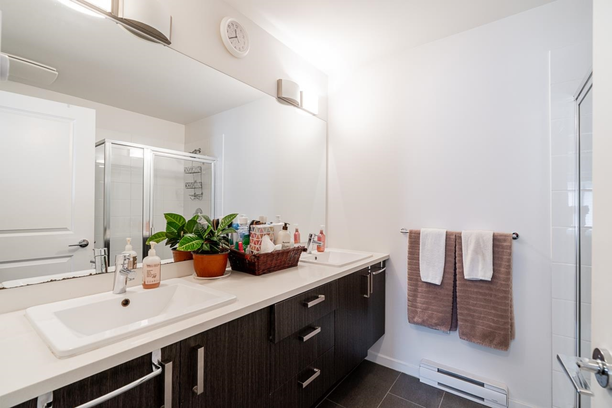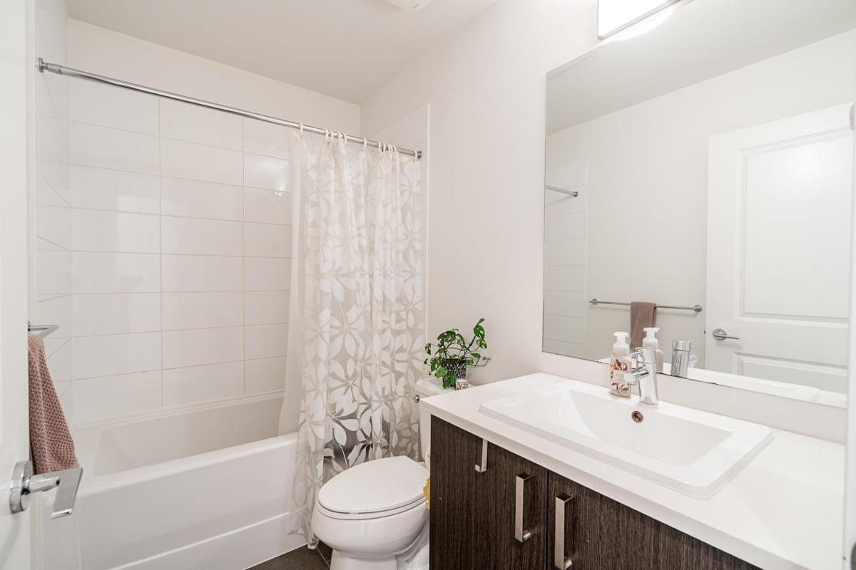 Location & Convenience of KINGS LANDING II built by Dawson & Sawyer hosts this END UNIT 4 Bedroom / 3 Bathroom / 1600 sq ft townhome with FRONT DOOR ENTRY on MAIN LEVEL. Modern finishes including quality laminate flooring; open concept kitchen with lots of cabinetry, oversized quartz island & SS appliances; step down living room to walk out spacious balcony on main. Family floorplan with Primary bed/ensuite and additional two bedrms with laundry upper level plus handy one bedroom (or rec room) with full bathroom on the lower level with a double side by side garage! Bring your two furry pets and rentals allowed. Just outside complex is transit stop that is minutes away from the main KG Skytrain station- Close by to Bear Creek Elementary, shopping, Bear Creek Park, etc etc!!