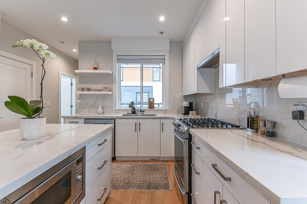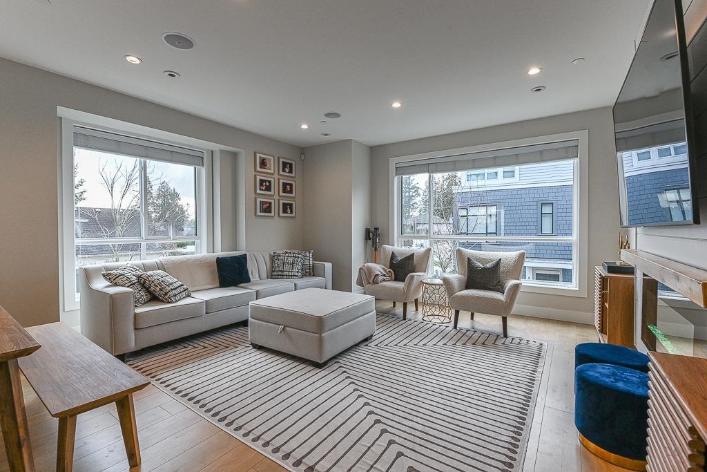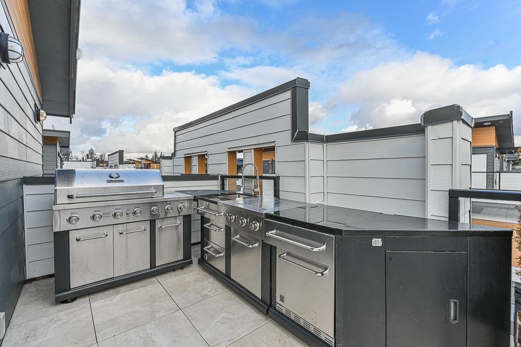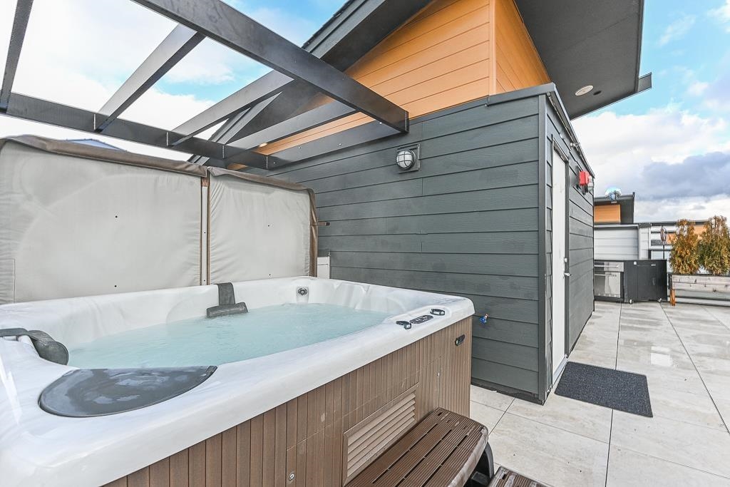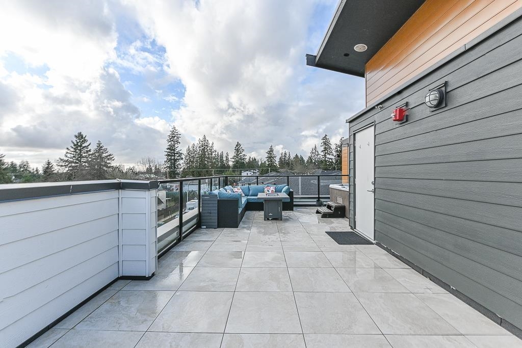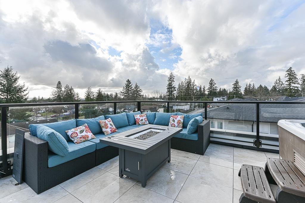 Welcome to this unique townhome in the prestigious "Fleetwood Point." This freshly painted beautiful rarely available CORNER UNIT has been designed for ENTERTAINING. This beauty features main floor with incredible natural light throughout, S/S appliances, laminate flooring throughout, Shaker Cabinets, HIGHEND Quartz Countertops with big island, electric fireplace, HIGH CEILINGS makes this Corner unit one of a kind. Upstairs features 3 bedrooms with 2 full baths. The Private Rooftop is privately positioned with over 650 sqft to entertain and features a private Hot tub, built-in barbecue, a fire pit & gazebo with an incredible VIEW! Double side by side car-garage, & LARGEST private fenced yard. Walking distance to shopping, parks, schools, future skytrain! NOT TO MISS THIS BEAUTY....