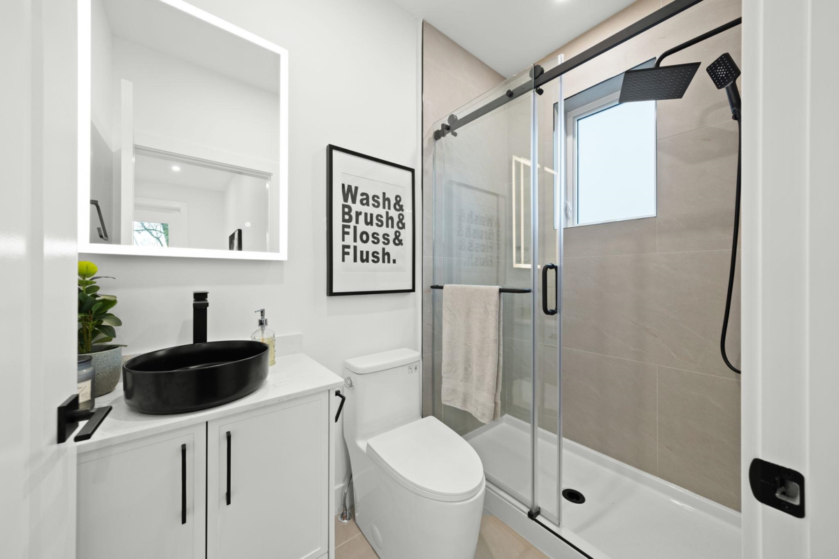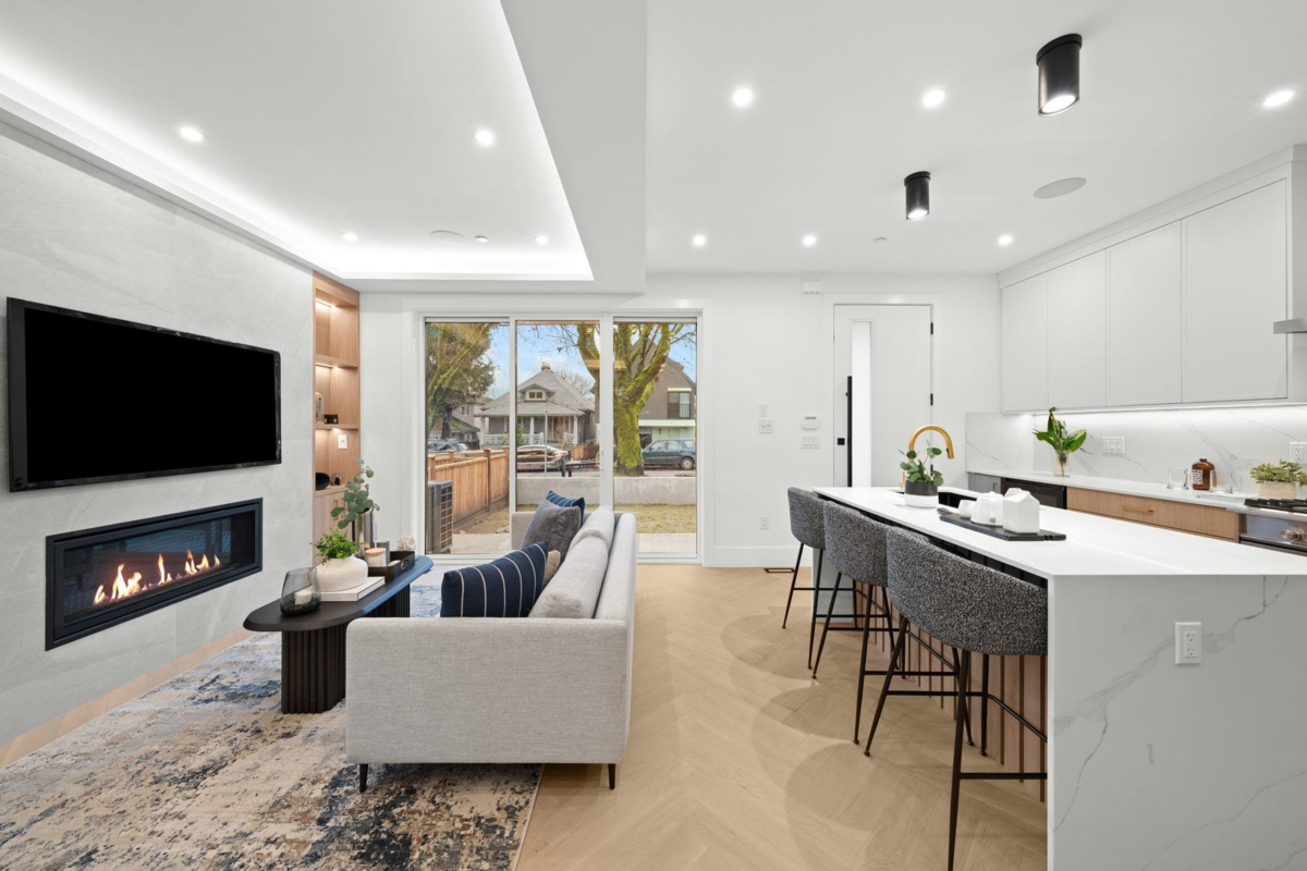 Welcome to this stunning, brand-new 3-bed, 3.5-bath half duplex built by Solid Foundation Homes and designed by LUXE Design located in the heart of Grandview-Woodland. This beautifully crafted home features an open-concept design with a spacious main floor, offering generous living and dining areas ideal for both everyday living and entertaining. The gourmet kitchen is equipped with premium Fisher & Paykel appliances, a gas range, and sleek quartz countertops. Enjoy year-round comfort with central A/C, an HRV system, and an energy-efficient heat pump. Additional features include full-home speakers, integrated surveillance cameras, and a private one-car garage. Ideally situated just steps from Trout Lake, Commercial Drive, schools, and shopping, with Downtown Vancouver only a 7-min drive