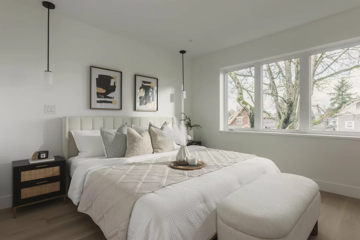 Discover an exceptional duplex by Mirani Homes, community-minded builders known for outstanding quality. Steps from Commercial Drive, this luxurious north-facing front unit offers 3 bedrooms, 3.5 baths, and an inviting open-concept layout designed for effortless entertaining. Herringbone floors, generous windows and inspired craftsmanship create a bright, warm ambiance throughout. The primary retreat features a walk-in closet and a spa-inspired ensuite with double sinks. Custom-tiled washrooms elevate every space, while the chef’s kitchen shines with Fulgor Milano appliances, premium counters, custom cabinetry and a lime-wash powder room. Enjoy radiant heat, heat pump A/C, fireplace, crawl space, epoxy-finished garage and seamless indoor–outdoor flow to your private front yard.