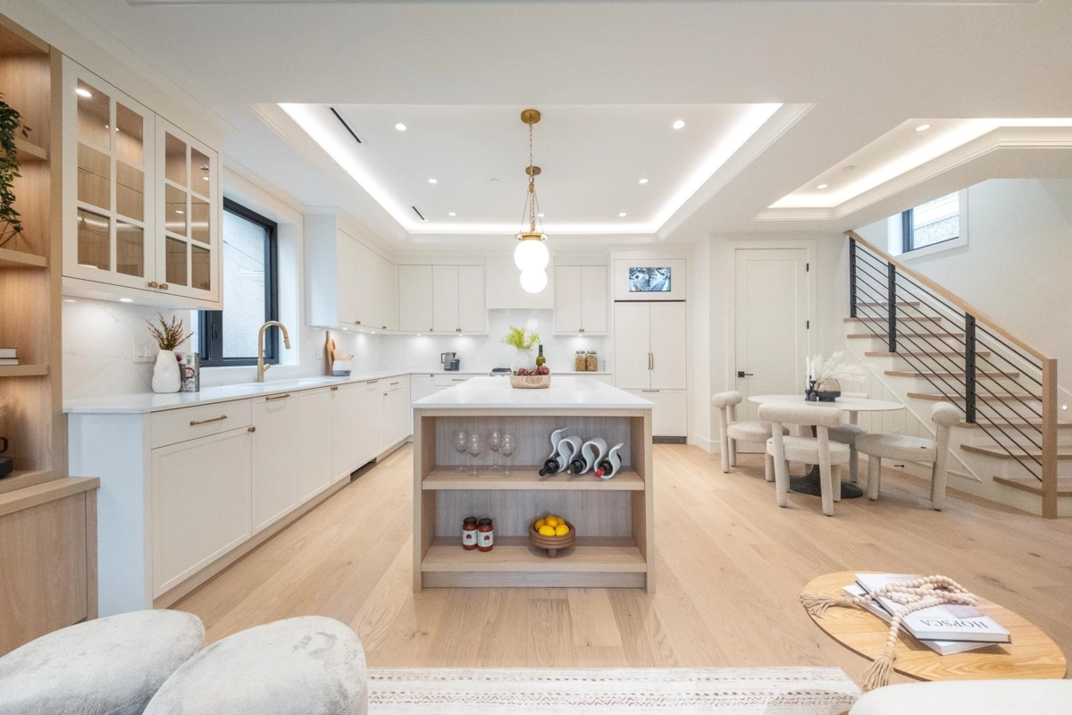 A MASSIVE KITCHEN YOU RARELY SEE IN A DUPLEX. Located in GRANDVIEW/WOODLANDS, this 1/2 duplex by AWARD-WINNING Brickhouse Building & Christophe Vaissade Design delivers exceptional QUALITY throughout. The OPEN MAIN FLOOR is anchored by a STATEMENT KITCHEN featuring a LARGE WATERFALL ISLAND and uncommon CUSTOM CABINETRY storage. The LIVING AREA is enhanced by COFFERED CEILINGS with ACCENT LIGHTING, adding architectural character. Large sliding doors extend the space to a GROUND-LEVEL PATIO framed by MATURE LANDSCAPING on one of the area's BEST TREE-LINED STREETS. Upper levels offer SPACIOUS BEDROOMS, including a PRIMARY with a LUXURIOUS ENSUITE and a private top-floor retreat. Includes a garage, ample parking, and steps to transit and LIVELY COMMERCIAL DRIVE
