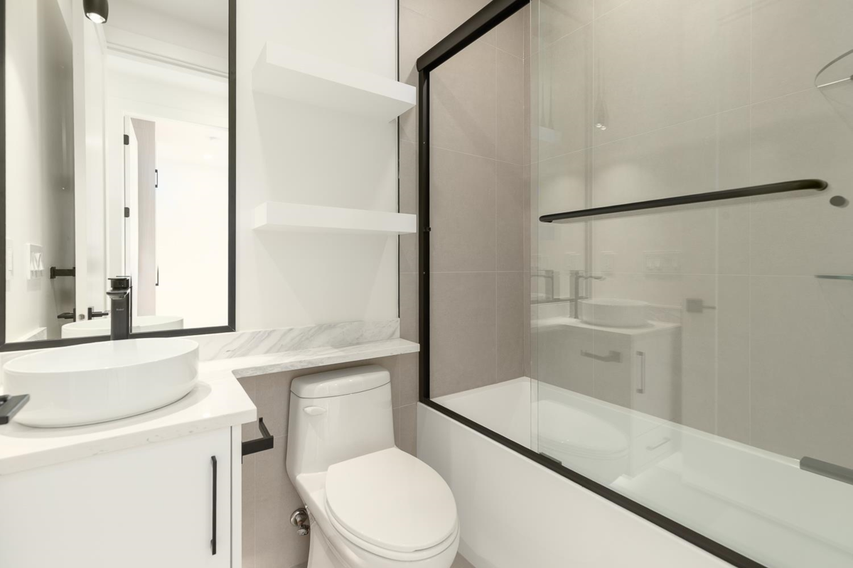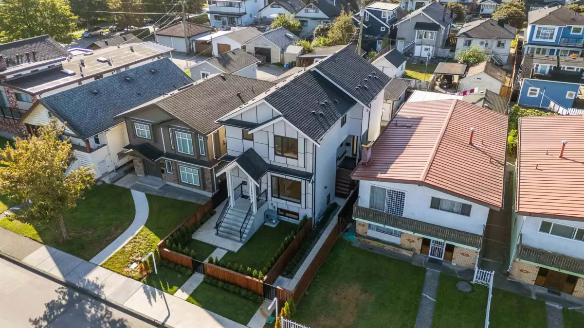 This brand-new, modern north-facing 1/2 duplex is located in a vibrant neighborhood close to parks, shopping, and community centers. The home features a gourmet kitchen with quartz countertops, custom cabinetry, and Italian Fisher & Paykel appliances including a gas range, fridge, and dishwasher. Soaring 10-foot ceilings, engineered hardwood floors, and large windows fill the space with natural light. Bedrooms include bay windows with views of downtown Rogers Arena and the North Shore, while the elegant ensuite and main floor washroom add a touch of luxury. Comfort features include radiant heating, a heat-pump, security cameras, alarm system and single detached garage with epoxy coating. Basement Flex Room has mortgage helper studio potential or 4th bedroom. Open House Sunday 3-5 PM