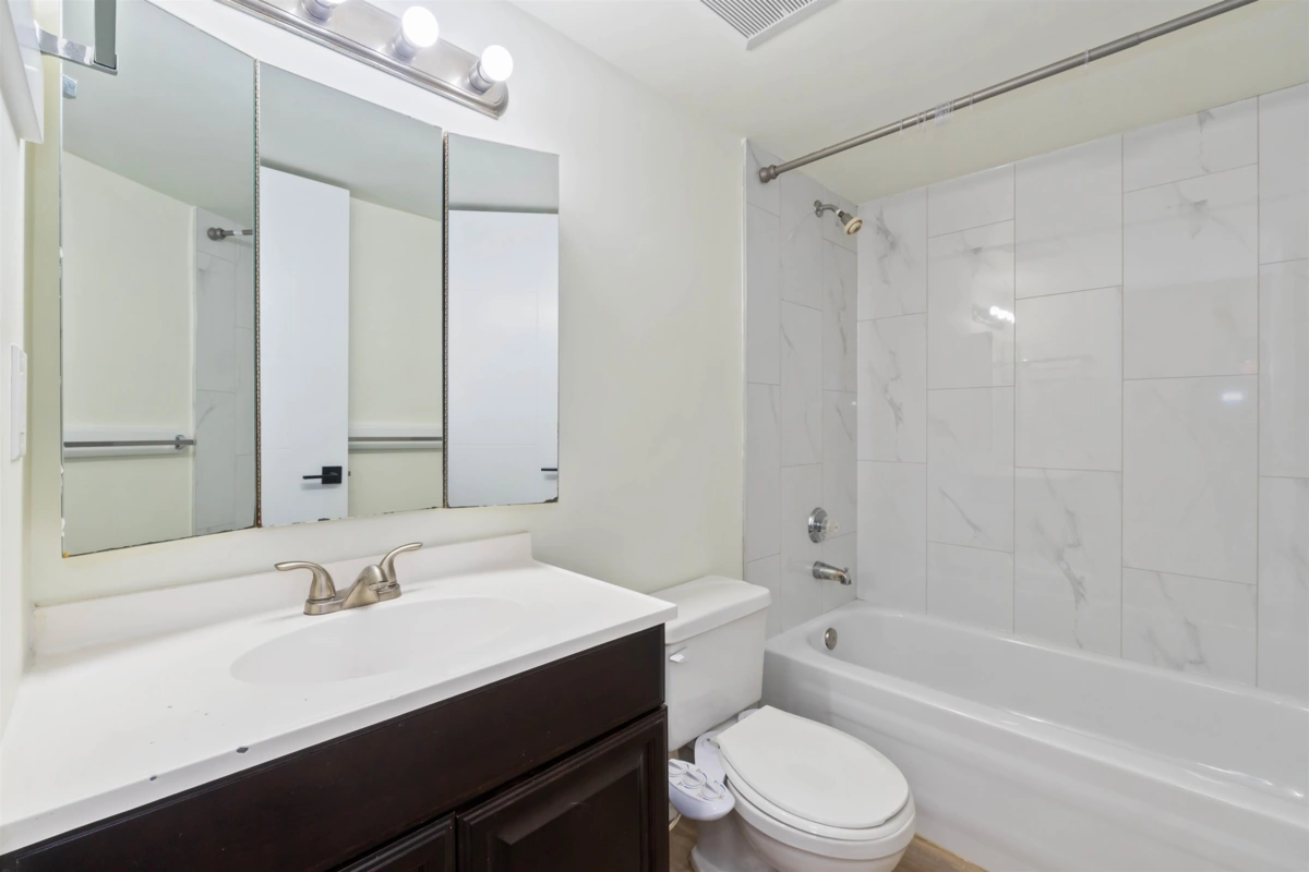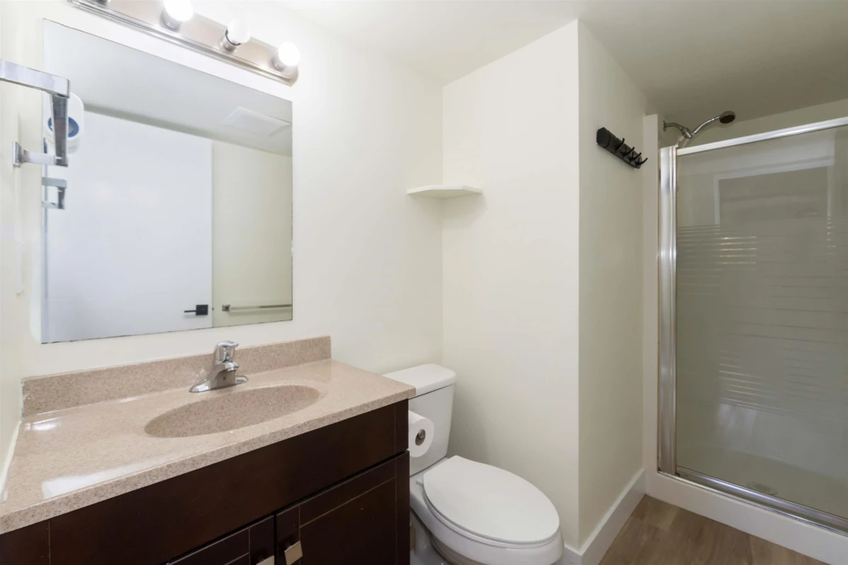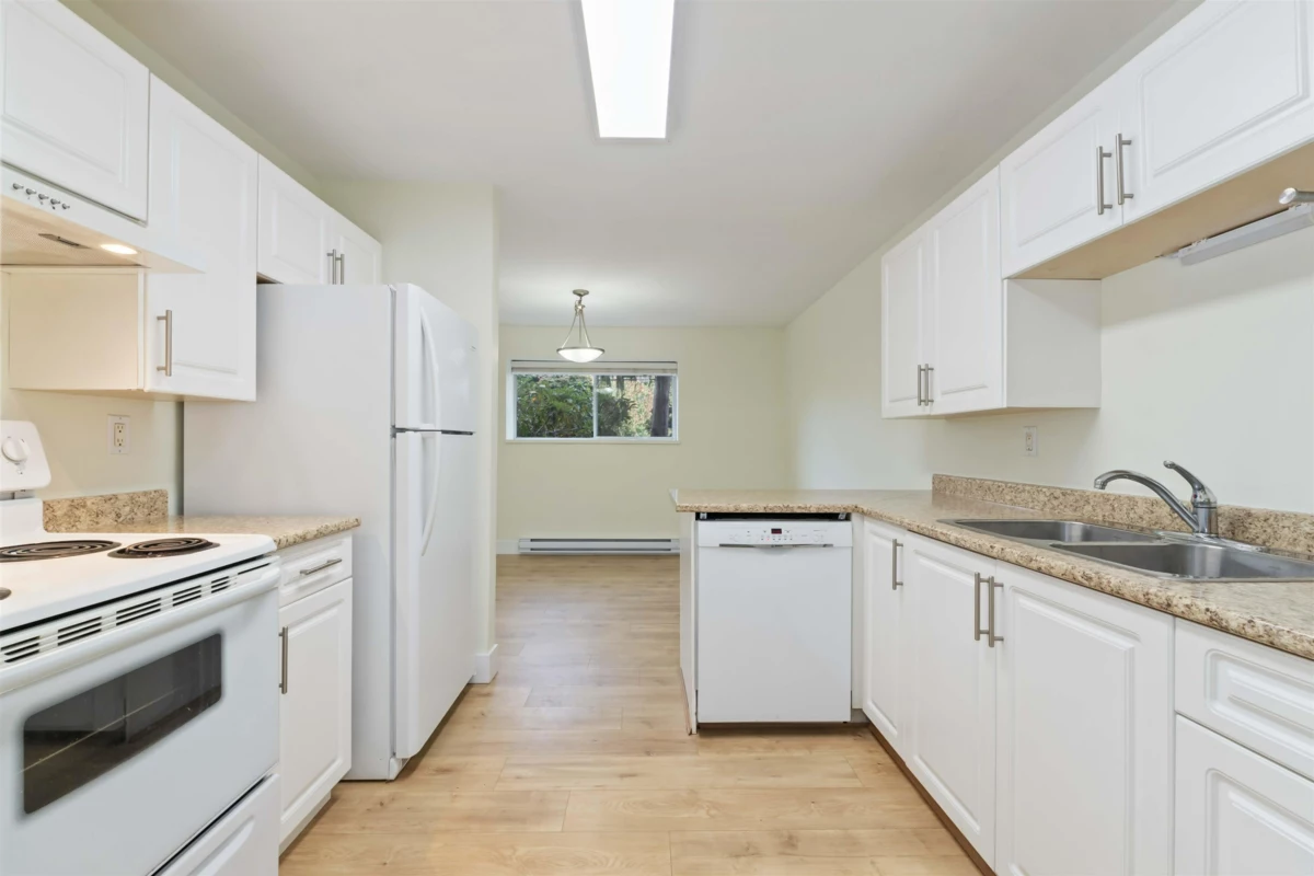 Ground floor, fully renovated 2-bedroom, 2-bathroom apartment offering over 1,000 sq. ft. of living space in the well-managed Valley View Terrace. Fully renovated in May 2022 with wide plank modern laminate flooring, fresh paint, new light fixtures, energy-efficient radiators, new blinds, a deck screen door, and a dishwasher. The building features a newer roof and a brand-new updated lobby (Feb 2022). Centrally located, steps to parks, shopping, and public transit. The unit includes generous in-suite storage, shared laundry, secured designated parking, and ample visitor parking. Rentals and pets allowed. Ideal for first-time buyers or investors—previously rented for $1,700/month. Vacant and move-in ready.