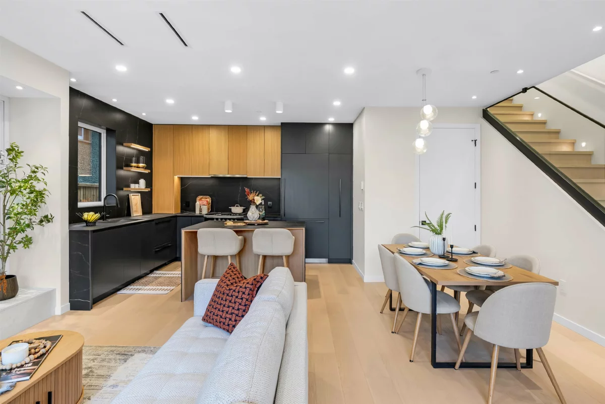 Experience exceptional craftsmanship in this Kitsilano front duplex. Every finish feels elevated and carefully thought out. Enjoy custom millwork, curated designer lighting, a bold island and premium integrated appliances. Live in year-round comfort with radiant in-floor heating, A/C, and a gas fireplace while enjoying a built in office nook that adds refined function. This home integrates indoor-outdoor living with folding glass doors leading to your private yard. Take advantage of a detached garage, and a crawl-space spanning the area of the main floor. Don't miss out on living in Vancouver's most desirable neighbourhood with Carnarvon Elementary, Kitsilano Secondary, and UBC just blocks away. Open House Saturday and Sunday 2-4