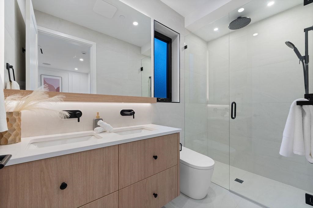 Built by renowned Westside builder Mann Bros Construction, this brand-new front 1/2 duplex in the heart of Kitsilano is a masterpiece of design and craftsmanship, with no detail spared. This 3 bed, 4 bath home blends timeless style with modern comfort. The main floor boasts an expansive, open-concept layout with a sleek Miele kitchen, Dekton counters, custom cabinetry, and a 7-ft island. High ceilings, triple-glazed windows, radiant in-floor heat, and eclipse doors create seamless indoor-outdoor living. Features include A/C, built-in speakers, EV-ready garage, and smart home features. Spa-inspired bathrooms feature Riobel and Kohler fixtures, frameless glass showers, and smart toilets. Enjoy mountain views in one of Vancouver’s most walkable and family-friendly neighbourhoods.