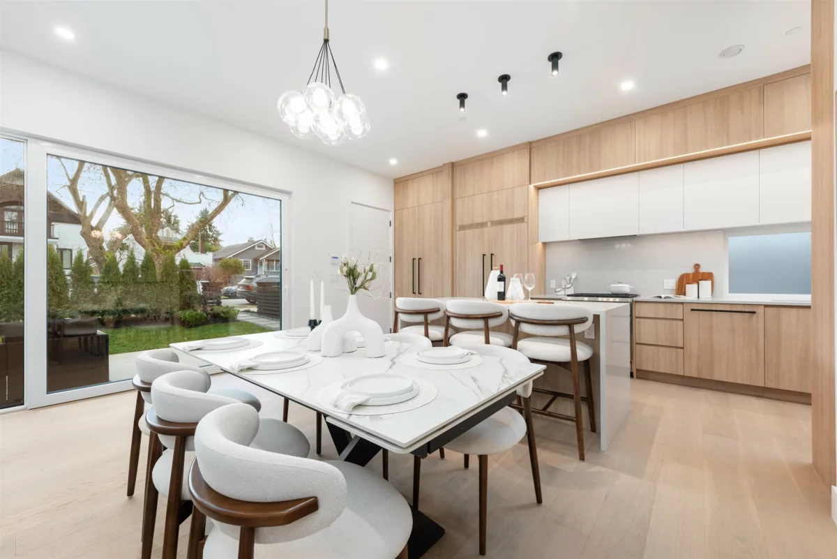 Situated in the heart of Kitsilano, this beautifully designed 4-bedroom family-sized front-and-back duplex is a testament to Trillium Homes’ commitment to quality and craftsmanship, supported by their exceptional homeowner care. Designed by Architrix, a renowned Vancouver-based design team, this home is built on a generous 40x115 lot. It features 10-foot ceilings on the main floor, a 15-foot sliding glass door, and a gourmet kitchen with Wolf appliances, dual integrated fridges, a wine fridge, and a Miele dishwasher. Luxurious details include engineered hardwood floors, heated bathroom floors, Aqualem fixtures, & custom millwork closets. An efficient heat pump providing heating and cooling ensures year-round comfort. This home perfectly blends sophistication and Kitsilano’s relaxed charm.