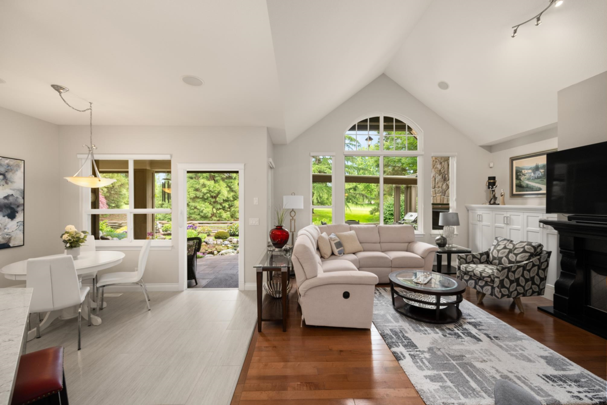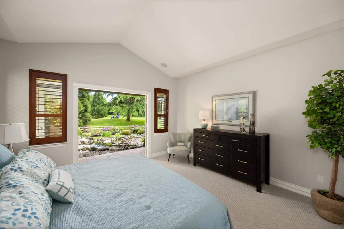 Welcome to Carriage Green in Morgan Creek! This stunning Genex-built golf course 4,088 SF home backs onto the 11th green and showcases quality craftsmanship throughout. Featuring 4 beds/3.5 baths with the primary on the main, it offers vaulted ceilings, a dedicated office, formal dining/great room and an updated kitchen that opens to a covered patio with fireplace, tranquil water feature, and gorgeous golf course views. Upstairs are 2 spacious beds and a full bath. The lower level impresses with a custom bar, wine room, gym, rec room, and guest suite. Enjoy year-round comfort with A/C, new high-efficiency furnace and heat pump. Walk to Morgan Creek Golf Club, local dining, parks and top schools: Morgan Elementary, Grandview Heights, and Southridge. The perfect blend of home and lifestyle!