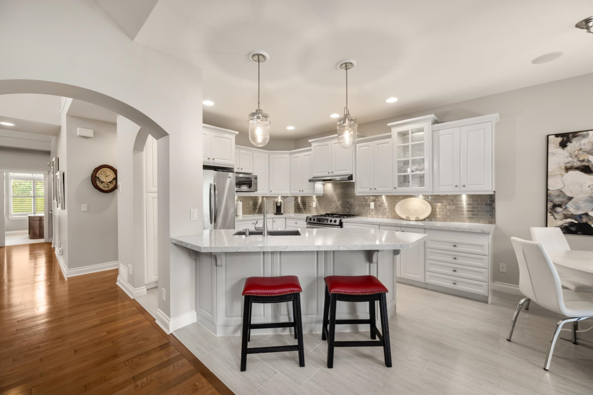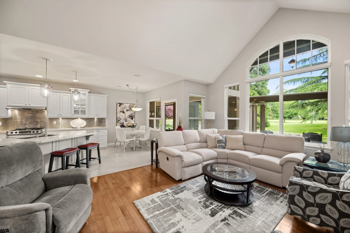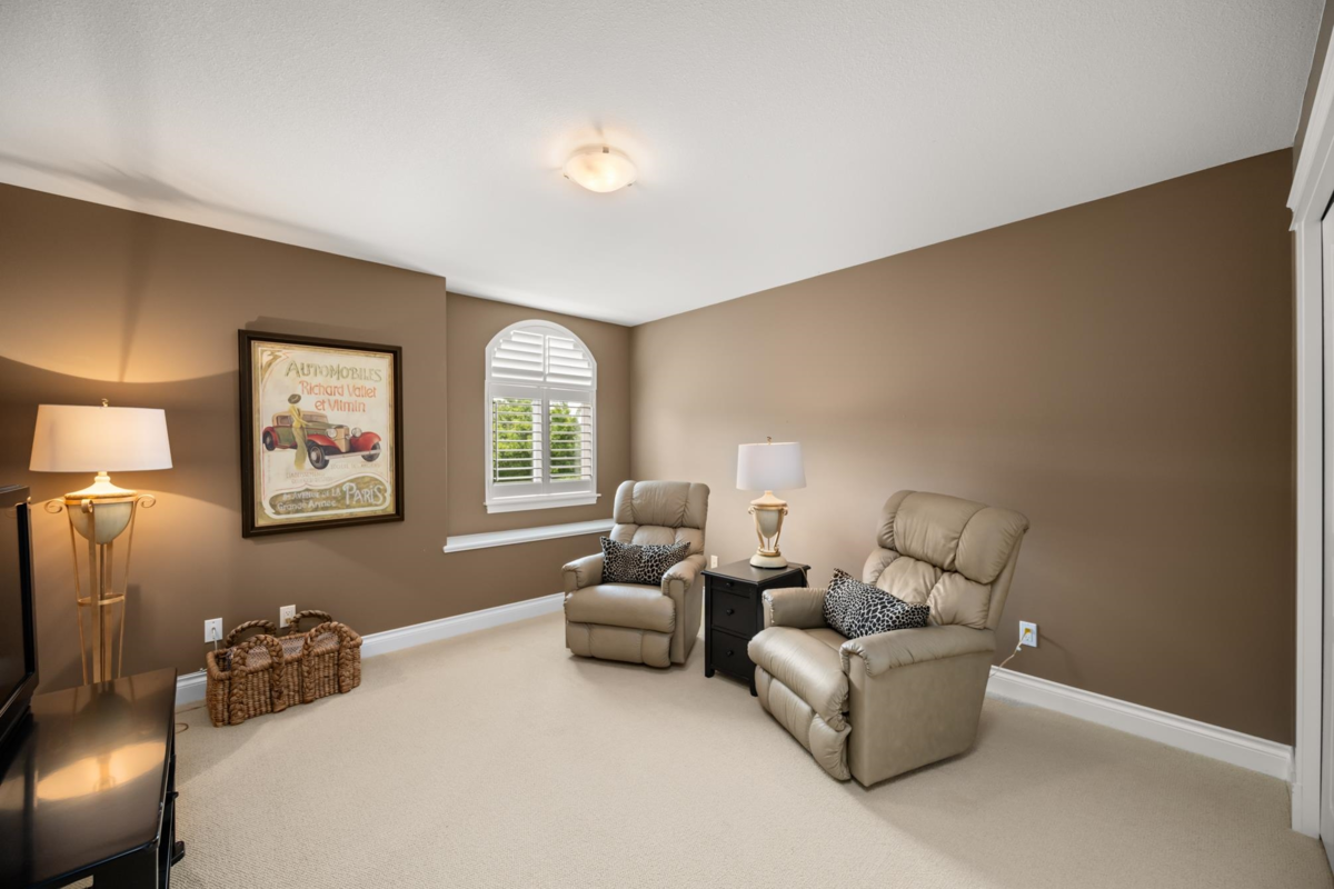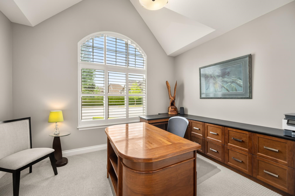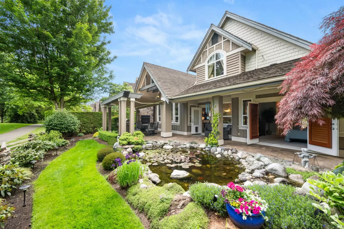 Welcome to Carriage Green in Morgan Creek! This stunning Genex-built golf course 4,088 SF home backs onto the 11th green and showcases quality craftsmanship throughout. Featuring 4 beds/3.5 baths with the primary on the main, it offers vaulted ceilings, a dedicated office, formal dining/great room and an updated kitchen that opens to a covered patio with fireplace, tranquil water feature, and gorgeous golf course views. Upstairs are 2 spacious beds and a full bath. The lower level impresses with a custom bar, wine room, gym, rec room, and guest suite. Enjoy year-round comfort with A/C, new high-efficiency furnace and heat pump. Walk to Morgan Creek Golf Club, local dining, parks and top schools: Morgan Elementary, Grandview Heights, and Southridge. The perfect blend of home and lifestyle!
