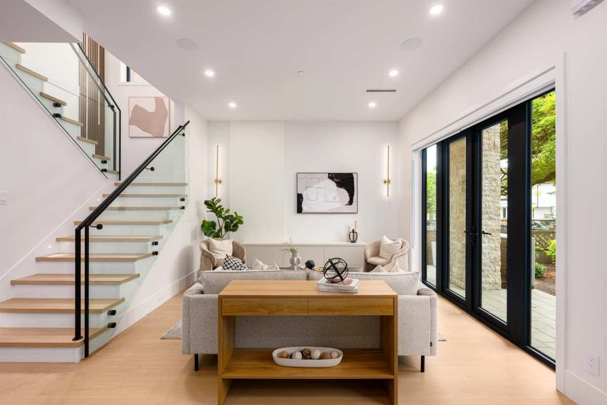 2 LEVEL front and Back DUPLEX in Vancouver Heights by Cheng Properties. These homes offer 4 spacious bedrooms and 3 stylish bathrooms across a thoughtfully designed layout with 1 bedroom on the MAIN FLOOR. Featuring engineered hardwood flooring, gas stove, in-suite laundry, high ceilings and a heat pump with A/C for year-round comfort. Move in and enjoy main floor sound system, smart doorbell, and a built-in security system. Each unit boasts private outdoor space, professional landscaping, and parking. Ideal for families seeking a blend of comfort, function, and smart home convenience in a beautifully crafted residence. Located in walking distance to cafes, shopping and all the necessities. School Catchment: Sir John Franklin Community + Templeton Secondary. Move-In Ready!