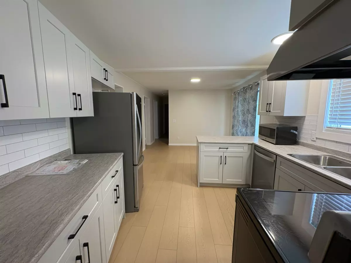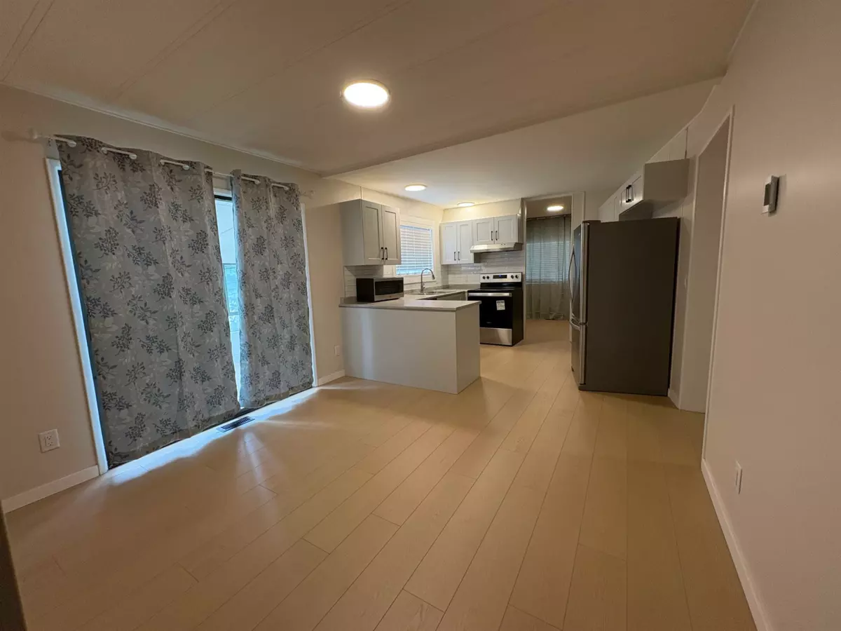 Discover the perfect blend of comfort and functionality in this 3-bed 2-bath corner lot home. Highlights include a spacious sunroom, double garage, workshop, and lovely deck for outdoor enjoyment. Recent updates bring peace of mind with a new torch-on roof, plumbing upgraded to pex pipes, new crawl space insulation, new furnace & hot water tank, a cozy gas fireplace and stylish new flooring throughout. The kitchen shines with all new cabinetry and appliances, making this home move-in ready! Enjoy the added benefit of low monthly pad rental and the flexibility of accommodating up to two pets. This home has it all ~ don’t miss out!