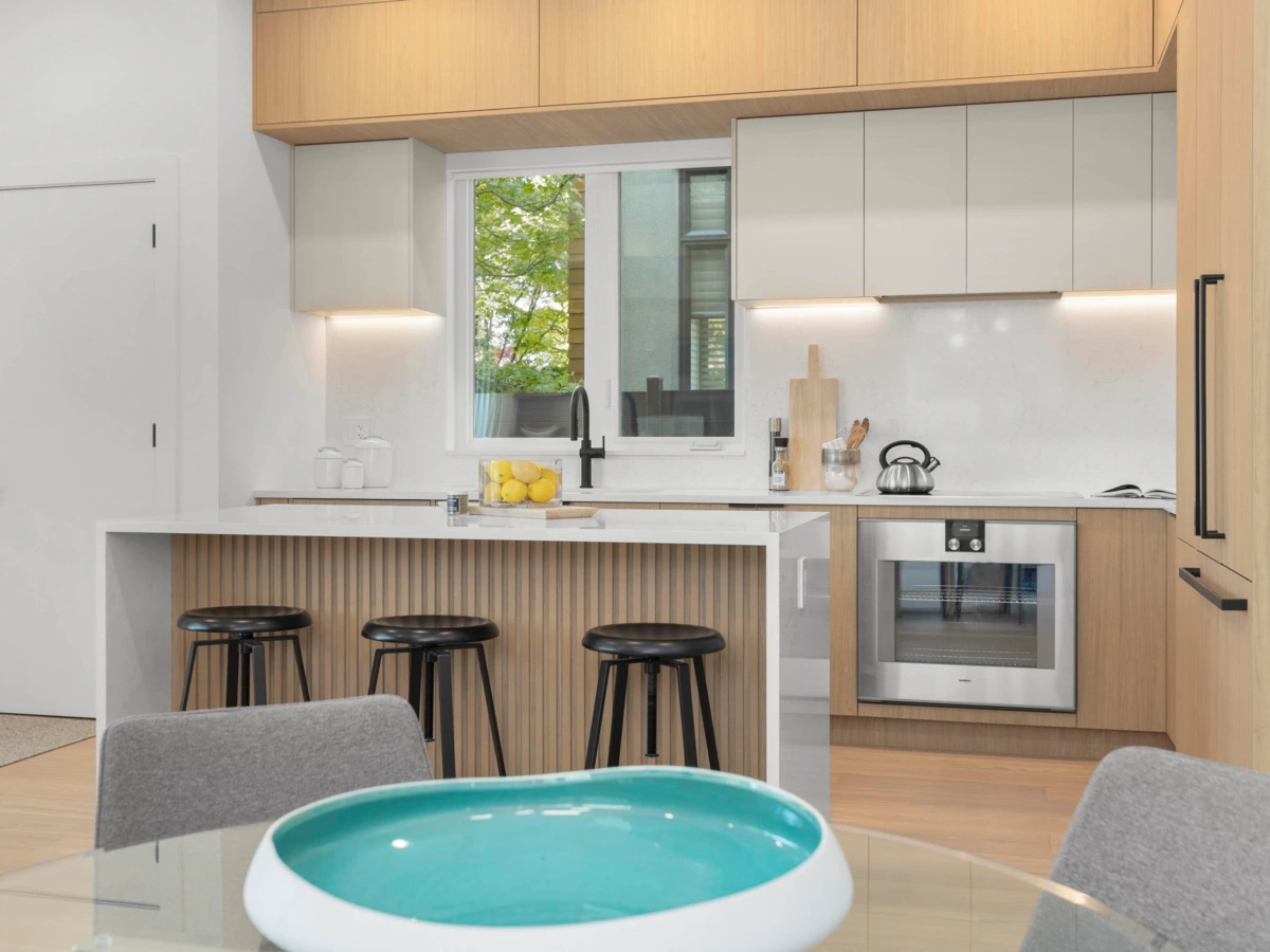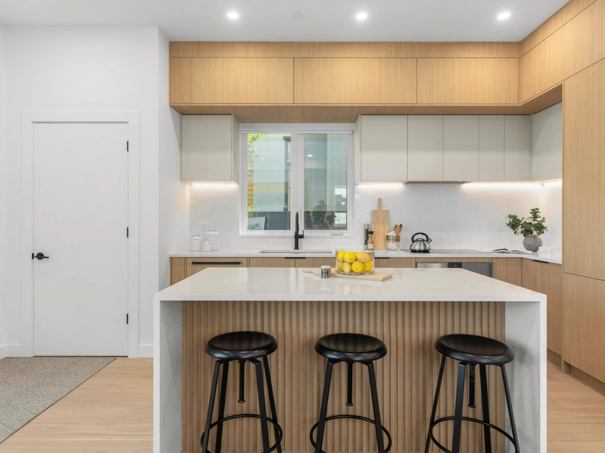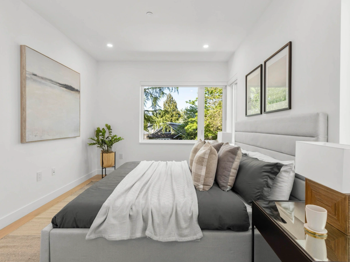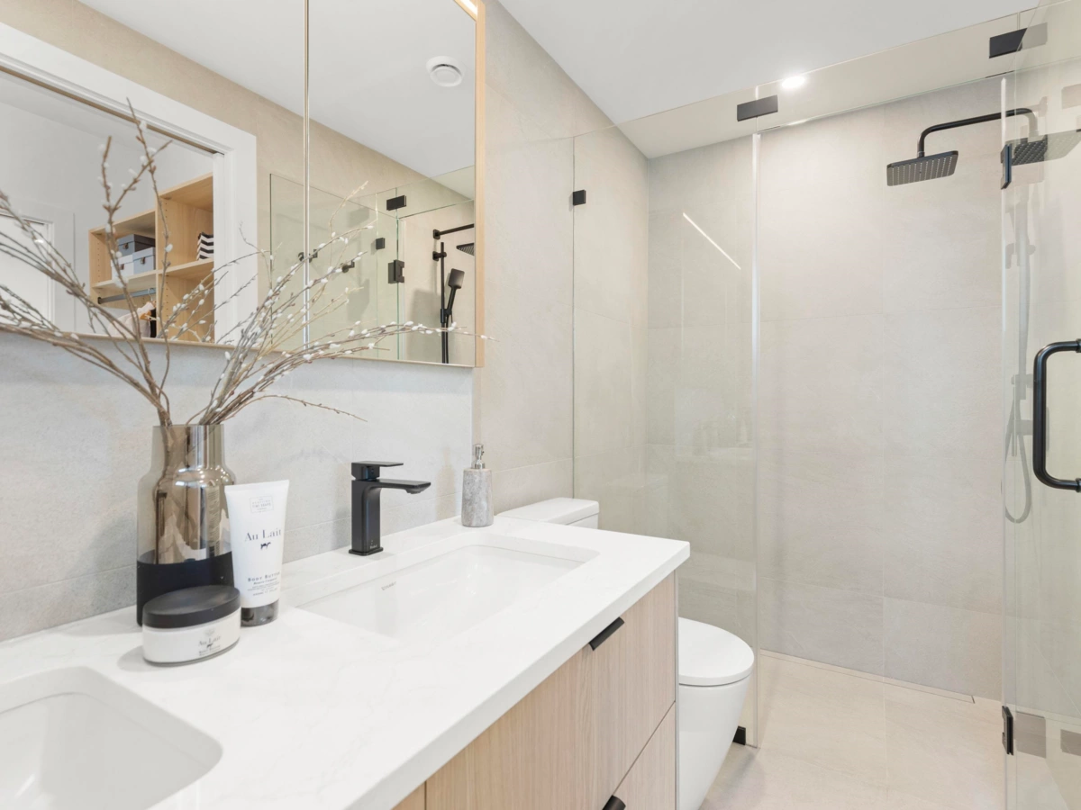 Brand new 1/2 duplex, expertly crafted as a Net Zero energy efficient home. Located in the desirable north of 10th Point Grey location. Flooded w/natural light, the main floor showcases 10’ ceilings w/ custom millwork, cabinetry, & 3-pane slider door to front patio. Gourmet kitchen boasts Kohler fixtures, quartz surfaces, & Gaggenau appliances. Upper floor features 2 beds incl. principal w/walk-in closet & spa-inspired ensuite. Top level features a 1 bed retreat w/ vaulted ceilings & balcony. Bathrooms feature matte black shower hardware and faucets, frameless glass enclosures, and Nu Heat flooring. Home features triple glazed windows, exterior insulation, white oak engineered hardwood, wifi enabled security system, & 1 car garage. Steps from Trimble Park, WPGA, and Queen Mary Elementary.