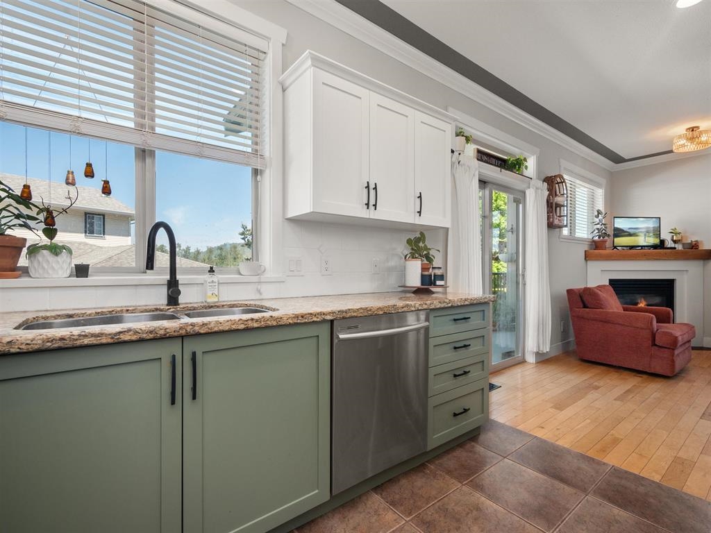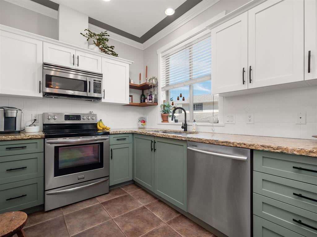 Beautifully maintained end-unit townhouse on a quiet no-through street in the heart of Sardis. This spacious three-level home offers a thoughtfully designed layout and is just minutes from all amenities. The main floor features a generous kitchen with granite countertops, stainless steel appliances, and heated tile floors, opening onto a bright living area with hardwood flooring and a cozy gas fireplace. Crown mouldings, central air conditioning, and designer paint colours add a touch of elegance throughout. Upstairs you'll find three bedrooms, including a spacious primary suite with a walk-in closet and a private 3-piece ensuite with heated tile. The lower level boasts a large recreation room complete with its own bathroom—perfect for guests, hobbies, or a home office.