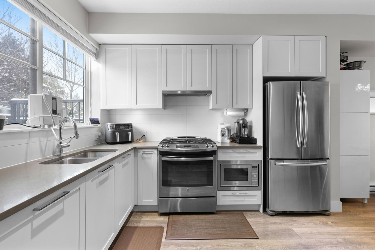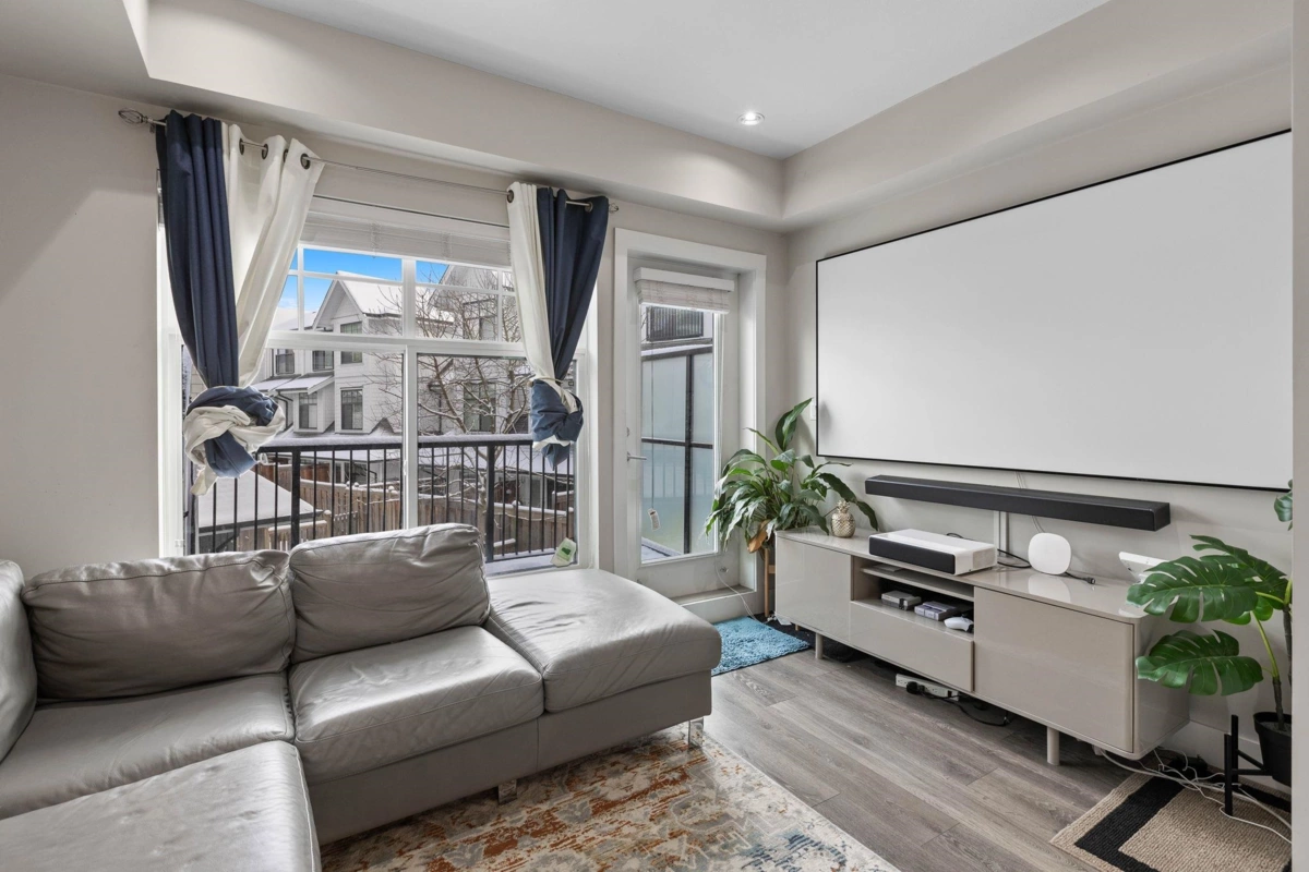 EXCEPTIONAL UPGRADED CORNER UNIT in Burnaby's most coveted premium townhome enclave, Savile Row. Designed by the acclaimed GBL Architects, this exquisite contemporary residence boasts numerous upgrades, including laminate flooring, potights, updated ensuite tiling, floating shelves, and more. Revel in breathtaking views of Lion Peak from the master bedroom, a sleek stainless steel appliances, one deck & balcony, and 1,144 sq ft of thoughtfully designed living space. Nestled in the prestigious Burnaby Lake neighborhood, mere steps from 1,400 acres of parkland and the renowned Deer Lake, a vibrant hub for the city's finest. Grant your children access to the esteemed Buckingham Heights Elementary or Burnaby Central Secondary, Burnaby’s top school catchments. 2 side by side parking & locker.