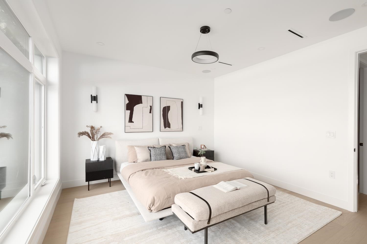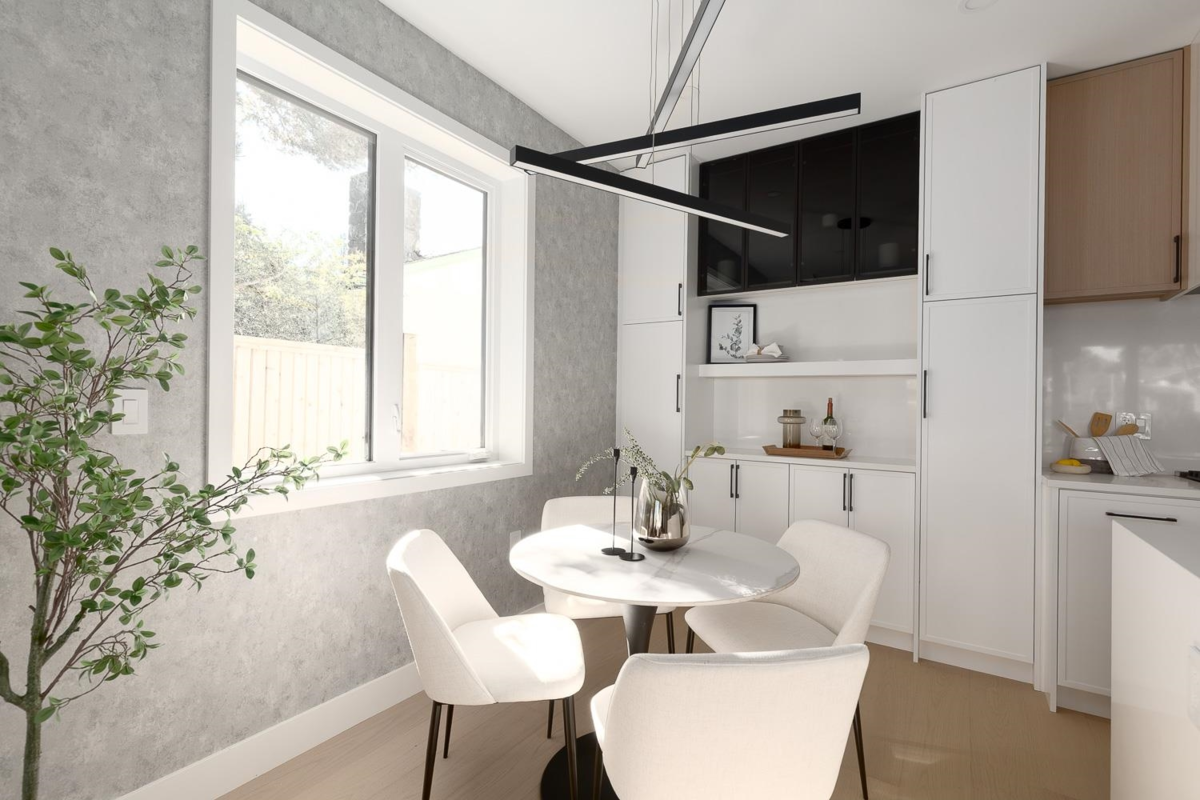 Front 1/2 duplex in desirable South Granville offering over 2,000sf, 4 bedrooms & 3.5 baths across expansive 3 levels. Designed to live like a detached home with a spacious island kitchen, full dining area & expansive living space. Eclipse doors open to a large private patio & yard for seamless indoor-outdoor entertaining. Upstairs features 3 generous bedrooms including a house-sized primary with walk-in closet & spa-like ensuite. The massive top floor offers over-height ceilings, a private balcony & flexibility to use as a 4th bedroom, office, gym or media room. Radiant heat, A/C, Google Nest, built-in speakers & secured parking provide modern convenience. Exceptional location near parks, shops, cafés & transit, with easy access to Kerrisdale, Oakridge & downtown.