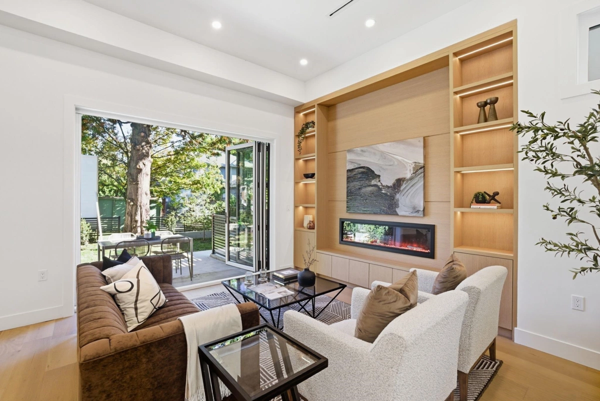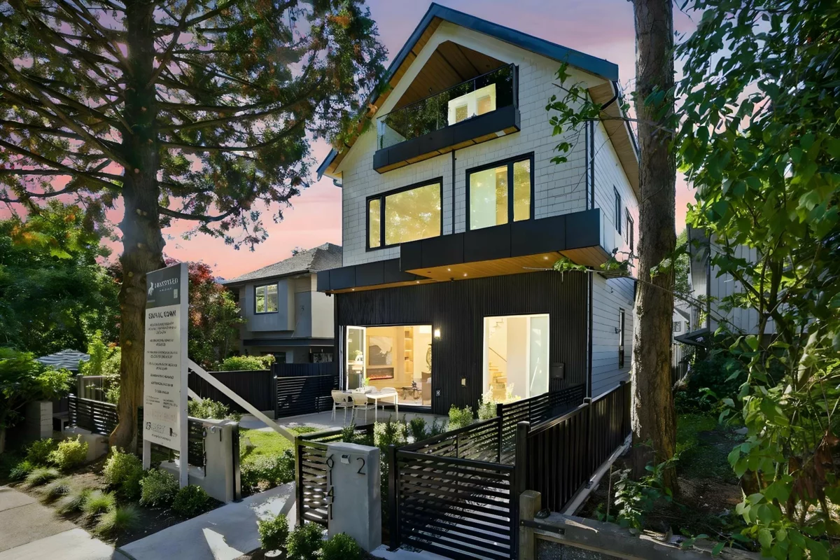 GORGEOUS/NEW FRONT duplex located on a quiet street in the heart of Kerrisdale! SOARING 11'5" ceilings on the main floor which features high end engineered wood flooring/millwork/fireplace, bar area/wine fridge, STUNNING Kitchen w tons of storage, MEILE appliances plus custom LED lighting throughout. Upstairs you will find 10' ceilings, ample walk in closets, both bedrooms w/ Ensuites + another loft area upstairs with a 3rd bedroom/full bathroom. Additional features include a 500+sf crawlspace, security/alarm/cameras, manicured outdoor spaces, private single car garage (EV ready) plus custom black metal fencing. An EXCEPTIONAL location, walking distance from shopping, restaurants, recreation, top-notch schools and transportation!