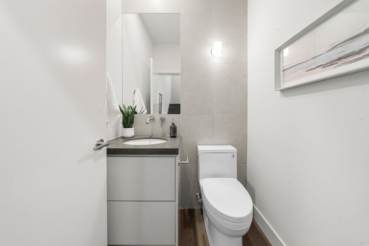 Welcome to Fraser Residences, where modern living meets neighborhood charm in the vibrant Fraser Street and East 49th Avenue area. Surrounded by authentic eateries, local markets, and parks, this community blends urban convenience with a strong sense of connection. These thoughtfully designed homes feature open-concept layouts with a quartz island, Fisher & Paykel appliances, brushed oak engineered hardwood flooring, and radiant in-floor heating throughout. The spa-inspired ensuite includes a frameless glass shower, deep soaker tub, and elegant fixtures. Built with sustainability in mind, each home offers a high-efficiency boiler, air conditioning, full alarm system, roller blinds, and private outdoor space. Fraser Residences is the perfect blend of style, function, and comfort.