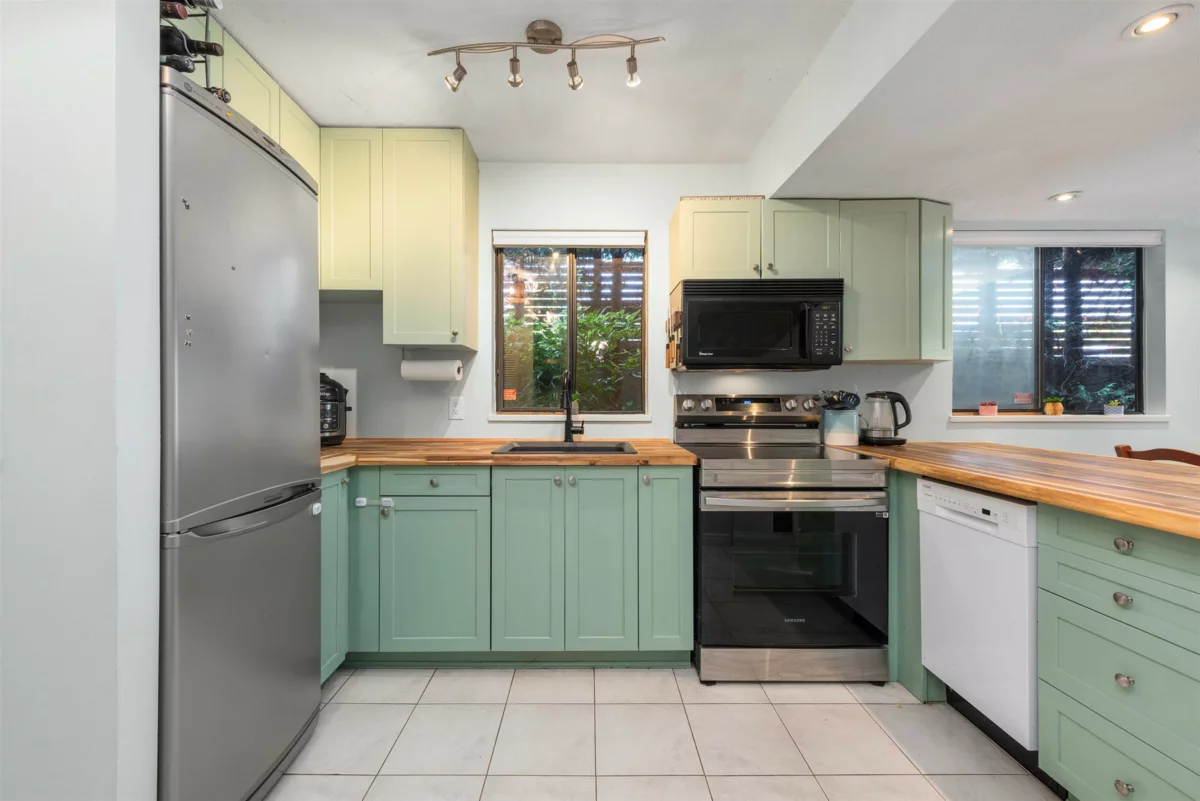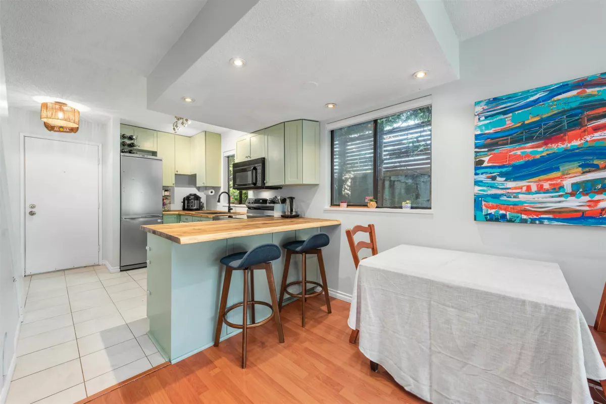 Wow, a TOWNHOUSE for the price of a condo in a FANTASTIC and ULTRA CONVENIENT neighbourhood! This home is extremely well laid out & offers a LARGE PATIO, perfect for your GREEN THUMB. The main floor features a SPACIOUS KITCHEN with a trendy real ACACIA WOOD BREAKFAST BAR, newer stove & dishwasher, a dedicated space for a dining room or desk, & a good sized living room which opens to your BACKYARD OASIS. Upstairs you will find 2 large bedrooms including a primary that can easily accommodate a KING SIZE bed as well as a full bath with an UPDATED vanity & fixtures. Just steps to NO FRILLS, SHOPPERS DRUG MART, all the CONVENIENCES of TRENDY & always VIBRANT FRASER & MAIN St's, and a 20min walk to HILLCREST Community Centre & QE PARK. Includes PARKING, 2 PETS allowed, and newer WASHER & DRYER.