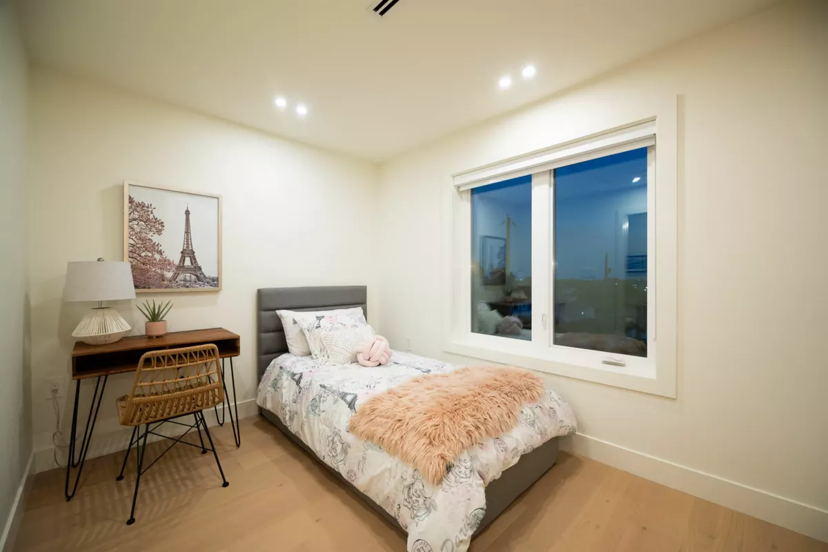 Welcome to this brand-new half duplex in desirable South Vancouver, offering over 1,500 sq. ft. of well-designed living space. Each spacious bedroom includes its own full ensuite, plus a convenient powder room for guests. Enjoy southwest views from the top-floor balcony—perfect for relaxing or entertaining. The open layout features radiant heating plus AC and a premium Fisher & Paykel appliance package, paired with elegant, high-quality finishes. A private backyard which is ideal for family gatherings, and the attached 1-car garage with EV hookup and additional parking ensures secure and convenient access. Combining modern design, comfort, and a prime location near shops, schools, and amenities, this is a rare opportunity to own a truly exceptional home.