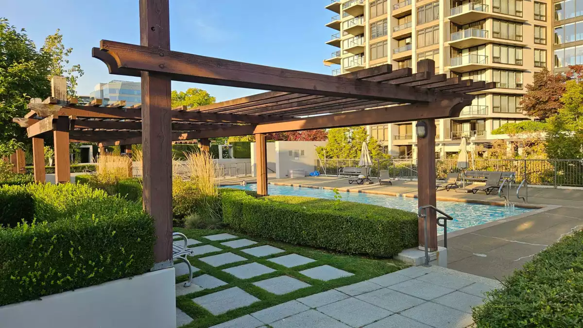 Move in ready. Rarely townhouse available in the heart of Richmond. Very well maintained and with renovation in 2023. features stainless steel appliances, gas cooktop, hardwood floor & high ceiling loft style in the living room. 2 bedrooms and 3 bathrooms spacious 1,283 sq.ft with easy access 1 parking stall and 1 storage. Enjoy the direct access from 353 sq.ft deck which equipped with gas fireplace to outdoor pool, acre of roof top garden, playground & mountain views. Fully equipped gym, concierge, hot tub & steam room. Steps away to SkyTrain, Landsdown Mall, Richmond Centre Mall, endless eateries, Trinity Western University, Kwantlen University and Community Centre.