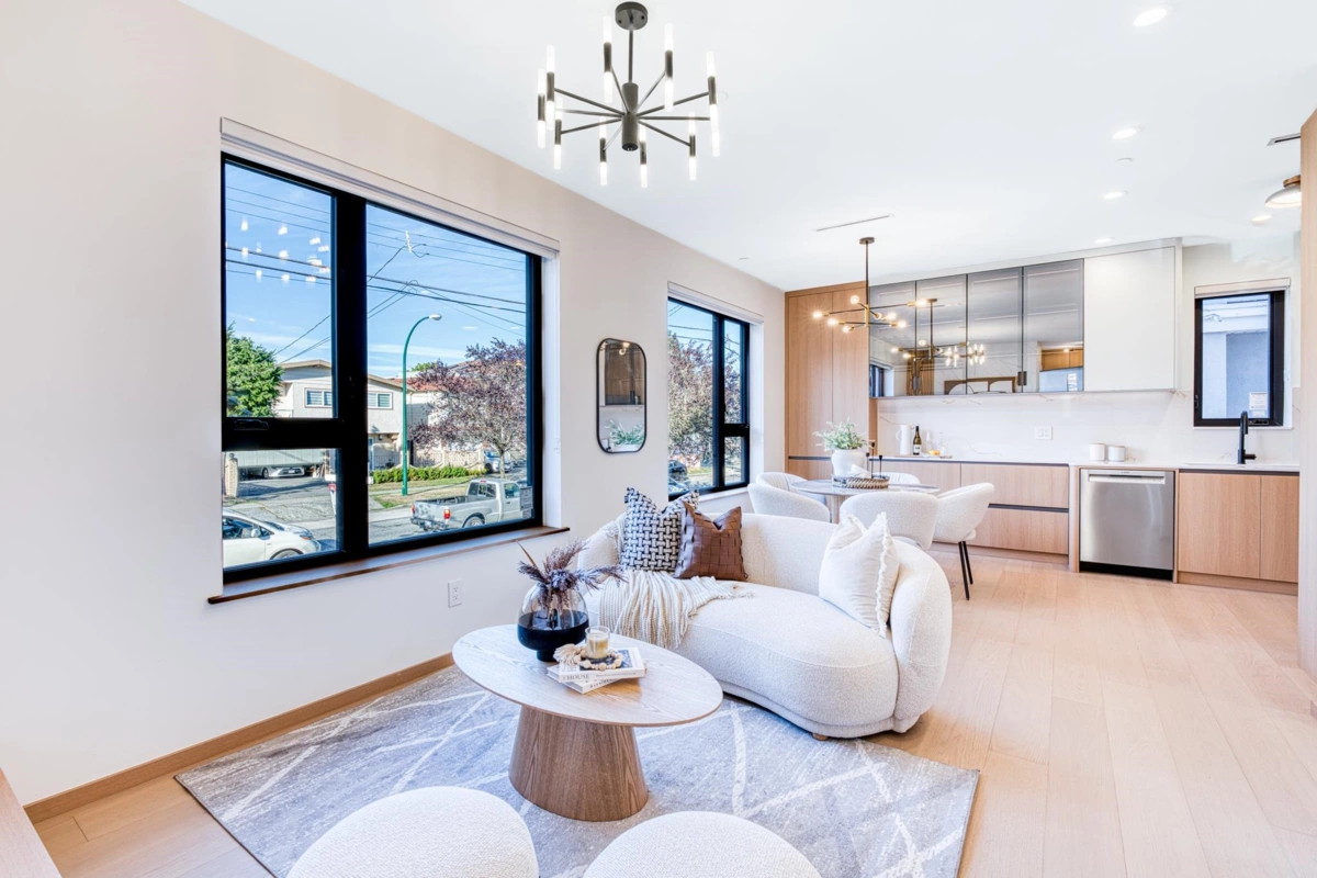 Brand new front duplex by Topvision featuring 4 beds 3.5 baths with luxury finishes and a bright, spacious layout. This home includes a versatile basement that can be your dream REC room with bar OR a mortgage helper lock-off suite. Luxurious custom cabinetry for thoughtful storage options designed throughout! Modern comforts include efficient heat pump A/C, HRV, full security system with CCTV, EV charging, and best of all, ZERO strata fees! Thoughtfully built for the future with extra earthquake reinforcements, extra weatherproofing, and high performance triple pane low-e windows. Located on a beautiful quiet street with easy access to Knight Bridge and 49th Ave. This one is a MUST SEE and a great place to call home! ACT BEFORE ITS GONE! Open house Jan 4 Sun 2-4PM.