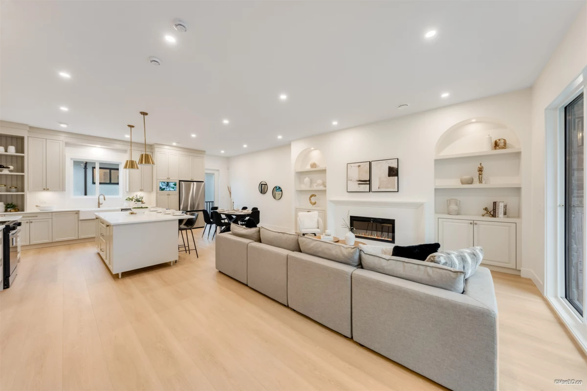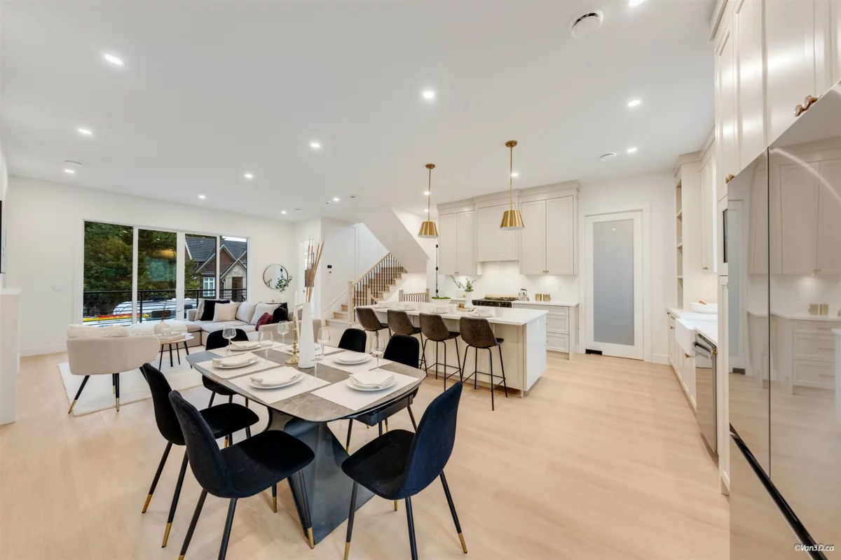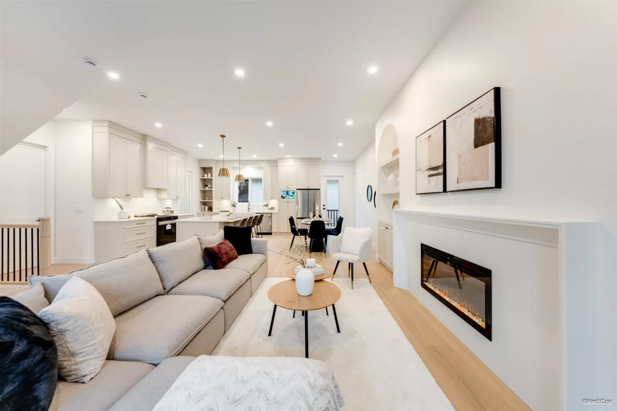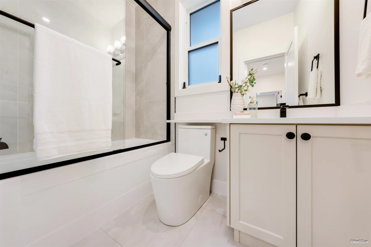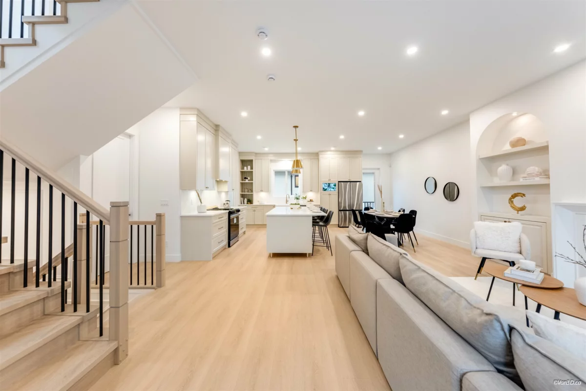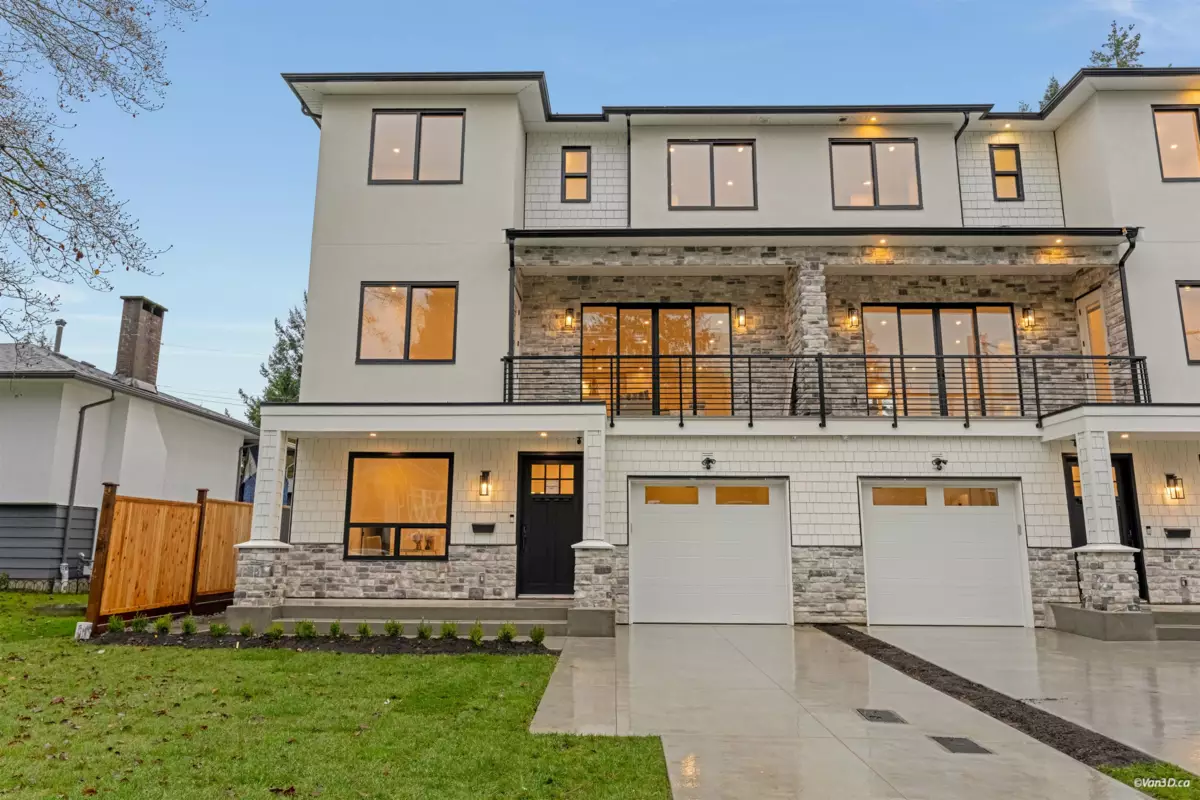 Brand-new 1/2 duplex offering approx. 3,000 Sqft. plus an 800 Sqft. 2-level coach house with back-lane access. This rare 10-bed, 8-bath property includes two legal suites - a 2-bed basement suite and a 2-bed 1.5 bathroom 2 level coach house ideal for rental income or multi-gen living. The main floor features a bright layout including a spice kitchen and a bonus bedroom/den. Upstairs offers 4 spacious bedrooms and 3 full baths. Below, an office/bedroom is reserved for upstairs use alongside the legal 2 bedroom basement suite.