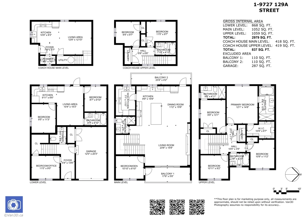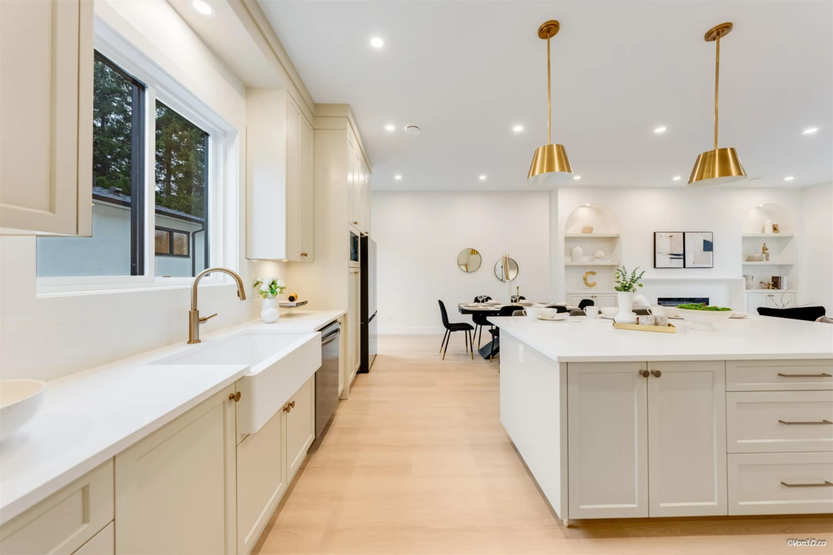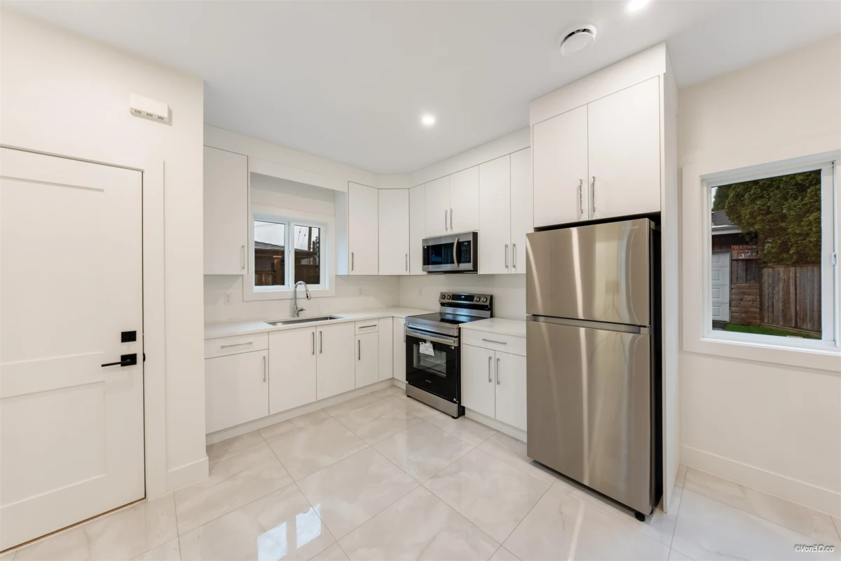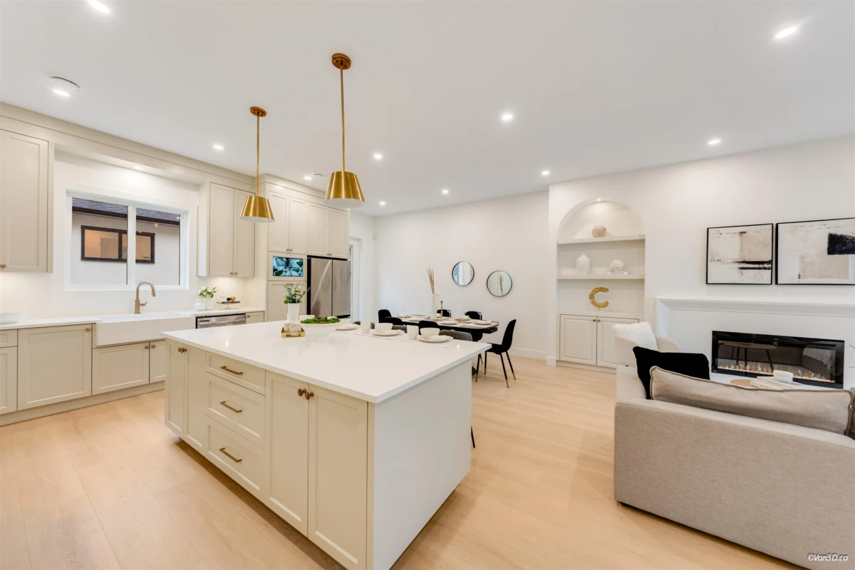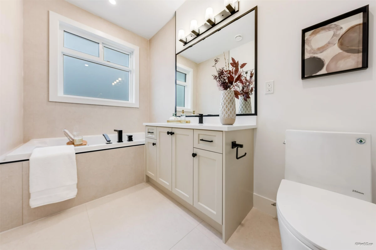 Brand-new 1/2 duplex offering approx. 3,000 Sqft. plus an 800 Sqft. 2-level coach house with back-lane access. This rare 10-bed, 8-bath property includes two legal suites - a 2-bed basement suite and a 2-bed 1.5 bathroom 2 level coach house ideal for rental income or multi-gen living. The main floor features a bright layout including a spice kitchen and a bonus bedroom/den. Upstairs offers 4 spacious bedrooms and 3 full baths. Below, an office/bedroom is reserved for upstairs use alongside the legal 2 bedroom basement suite.