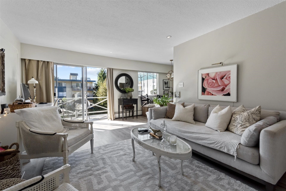 Sunny and spacious! Top floor south facing corner, fully renovated 2-bedroom apartment in ultra-accessible area of Lonsdale with an 85 walk score. Besides its super convenient location, features include the 76 sq ft south facing balcony, WOOD BURNING fireplace, new kitchen with illuminated cabinetry, bianca quartz countertops, stainless appliances including built-in dishwasher, new flooring throughout, 4" wood baseboards and decorative moldings. The Georgian is a free-hold, 14-unit mid-century walk-up that is impeccably cared for, allows for pets (2 cats), gas barbecue, and rentals. Parking and storage locker included. Low strata fees include heat and hot water. Viewing by appointment.