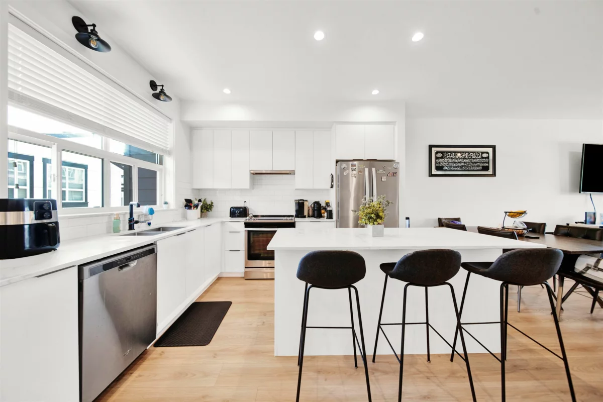 Step into modern elegance with this beautifully designed townhouse. The ground floor features a versatile flex room—ideal for an office, gym, or studio—plus a spacious two-car garage with extra storage. The main level offers an open-concept layout filled with natural light, a sleek kitchen with pantry, powder room, and private balcony. Upstairs, find three bedrooms and two full baths, including a master retreat with walk-in closet, ensuite, and stunning Mount Baker views. Located steps from shops, groceries, parks, and daycare, this home blends style with convenience. As part of a well-managed community, enjoy access to a clubhouse for larger gatherings. This townhouse truly delivers the best of modern living—schedule your private tour today!
