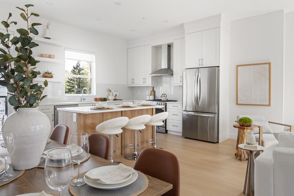 GORDON SQUARE by Paddington Properties. MOVE IN READY!. Parkside community of 32 homes nestled in a quiet residential neighbourhood yet only minutes to Willoughby Town Ctr, schools, Costco and amenities. This bright and open 3 bed and flex home features a uniquely wide layout. Oversized windows throughout. Soaring 10' ceilings on main level with a stunning kitchen including gas range, dedicated hood fan, built in microwave and quartz countertops. Upper deck with gas bbq hook up. Primary bedroom boasts large walk in closet, 4 pc ensuite w/ glassed in shower and dual vanity. Private flex room on lower level as well as outdoor patio. Side x side attached garage with EV rough in. $20k BUYER INCENTIVE. Open Sat/Sun 12-5.
