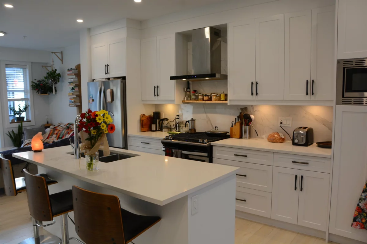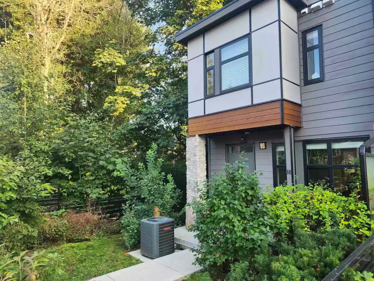 Rarely available END UNIT at Pine Creek Estates! Bright 3bed,3bath 1388 sqft townhouse offers a great blend of comfort modern living close to nature in convenient location! Main floor welcomes you with an open concept layout ideal for entertaining. Living room has a stylish fireplace, well designed kitchen offers high end appliances and a large breakfast bar, dining room with entrance to the deck. There is spacious primary bedroom large luxurious ensuite, 2 more bedrooms and modern bathroom. The garage provides 2 tandem parking spaces and enough room for a home gym or storage! Additional parking is on the driveway! Unit is LOADED WITH AC & Central Vac rough in. Located minutes away from vibrant MR downtown with shops and restaurants, Alouette Lake, Golden Ears & endless outdoor activities!