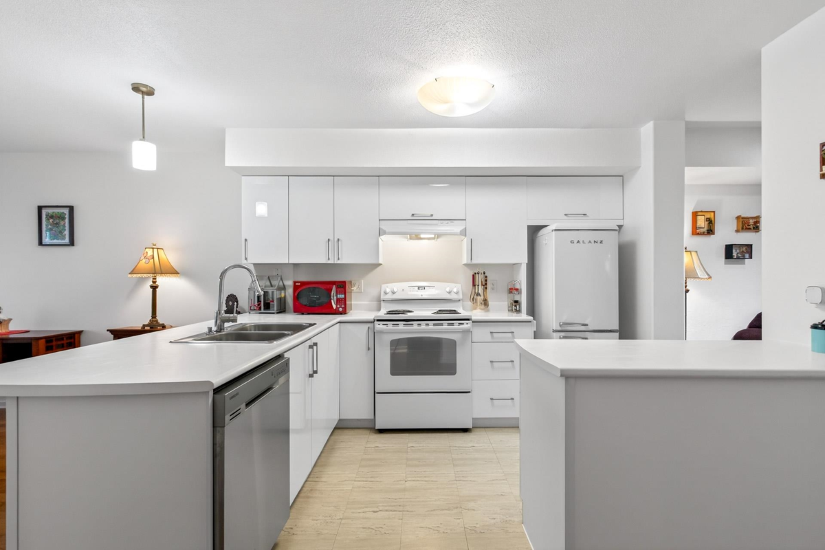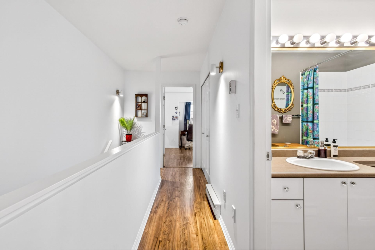 Newly renovated townhouse in popular RIVERSIDE TERRACE. The upper level has 2 large bedrooms, 2 baths (including an ensuite), and laundry. On the main level is a living & family room, a spacious kitchen, a gas F/P, a dining area, a balcony, and a covered patio with a view of the mountain & green belt. Second entrance through the street and patio. The lower level features a foyer, a double tandem garage, a storage area, and a carport in front. Newer roofs, windows, decks, and railings. Pet-friendly. Visitor parking. Close to Costco, shopping and transit. OPEN HOUSE: JAN 25 (SUNDAY) | 2-4 PM