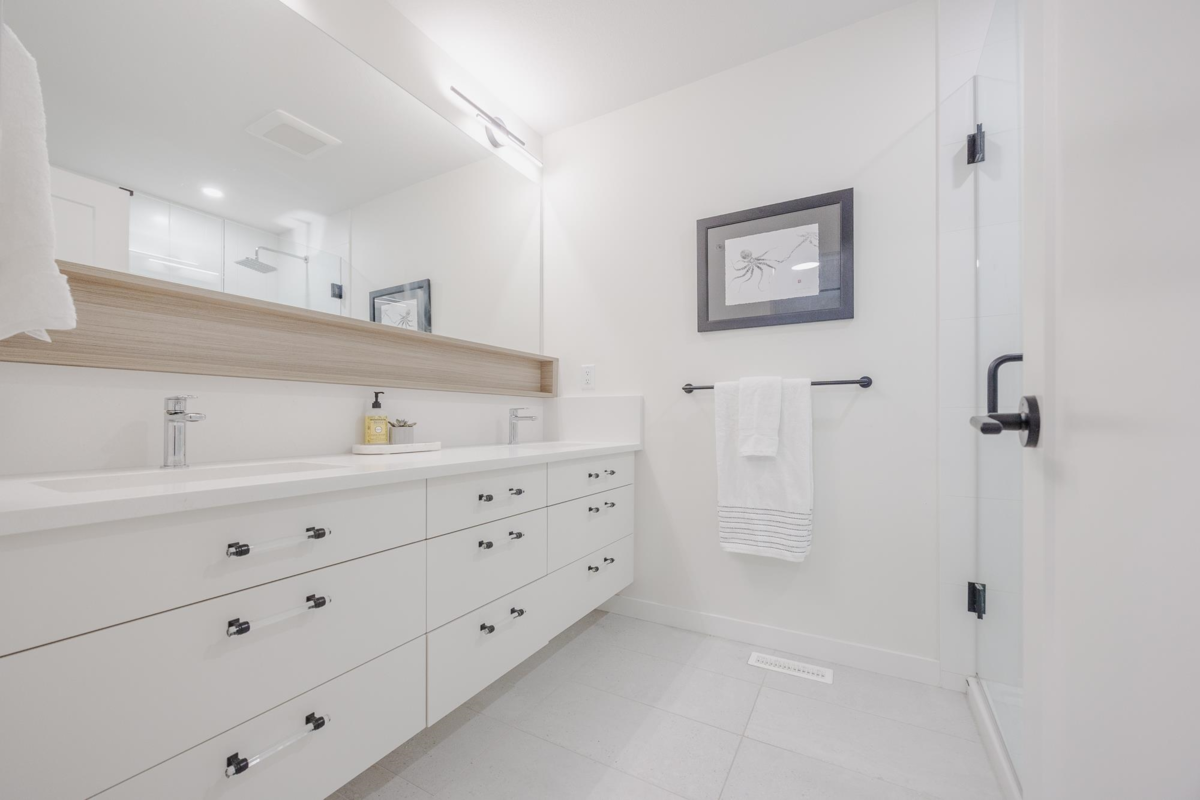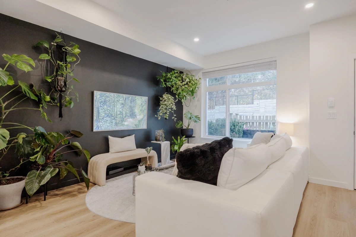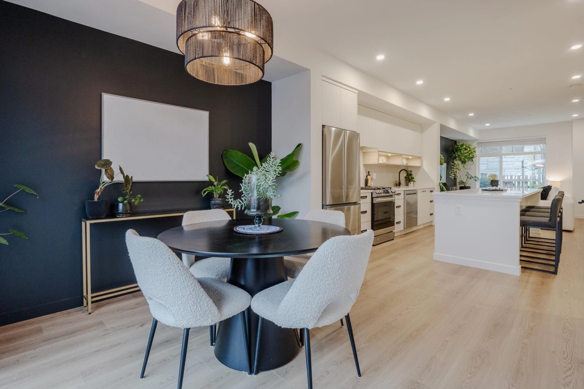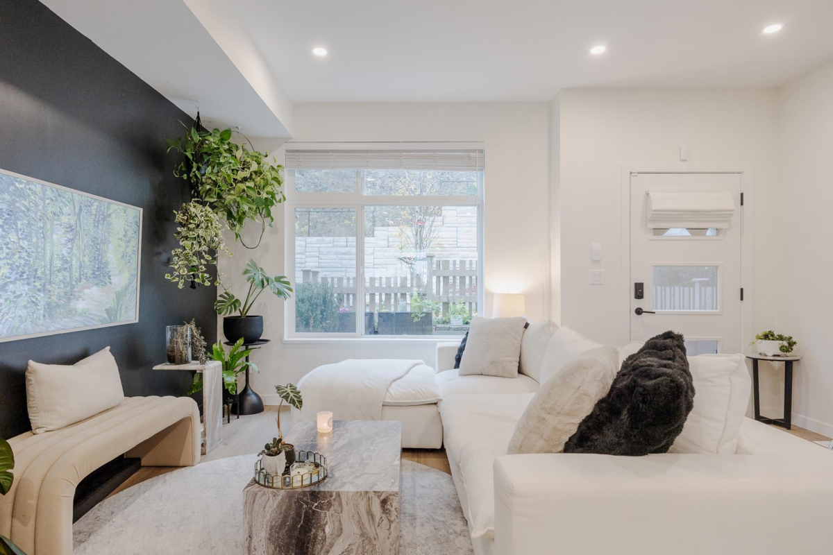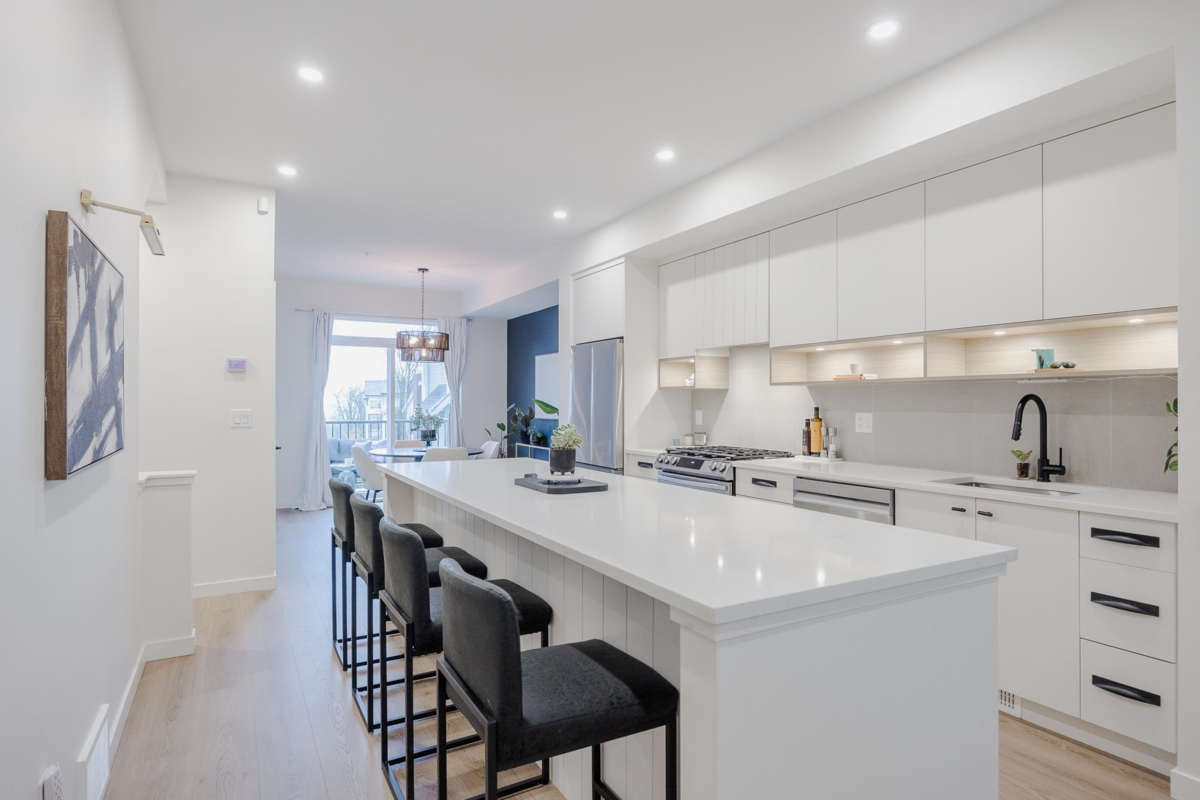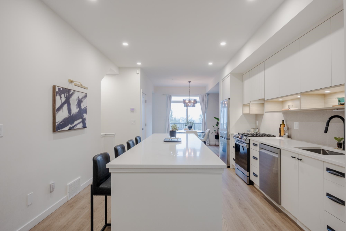 Step into this exquisite 2 bedroom townhome which can easily be converted back into a 3 bedroom, upgraded by an award-winning designer. This residence features a meticulously curated interior with open-concept elegance, AC & high-end finishes. The gourmet kitchen offers bespoke cabinetry, luxury plumbing fixtures, a large island, & premium appliances, flowing into refined living & dining areas where unobstructed views of Mission valley & Mt Baker create a stunning backdrop for intimate gatherings & sophisticated entertaining. Upstairs, the serene primary suite boasts a spa-inspired ensuite & walk-in closet. The lower-level flex space & private fenced yard adds functionality and you are mere minutes from parks, trails, top schools, & Mission’s best amenities.