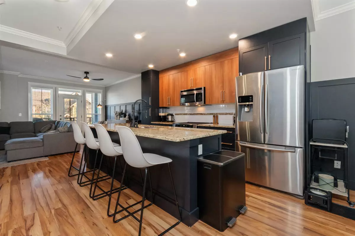 Nicomen Place in the heart of Garrison Crossing! This extensively updated 4 bdrm + den, 4 bath END UNIT offers over 2,000 sqft of bright, functional living space with THREE parking. Updates include a brand new kitchen, fresh paint throughout, & newer SS appliances. The open concept main floor features a spacious living room with gas F/P, covered balcony, a modern kitchen with large granite island & ample cabinetry, plus a dining area, den, & powder room. Upstairs boasts a vaulted ceiling master bdrm with walk-in closet & ensuite with dual vanity, two addtl bdrms, full bath, & laundry. The lower level includes a bright rec room/bdrm with full bath & separate entrance. Steps to Save-On-Foods, Cheam Leisure Centre, Vedder River Rotary Trail, UFV, & all amenities — minutes from Cultus Lake.