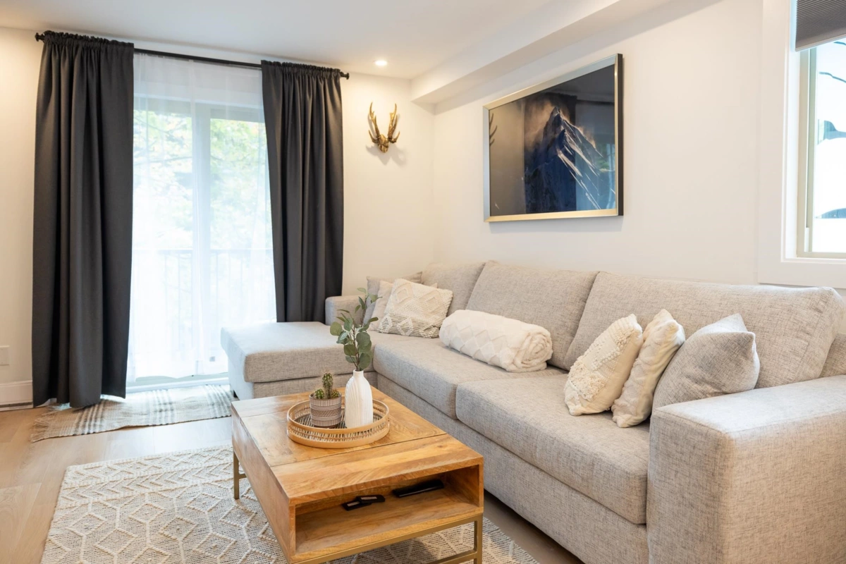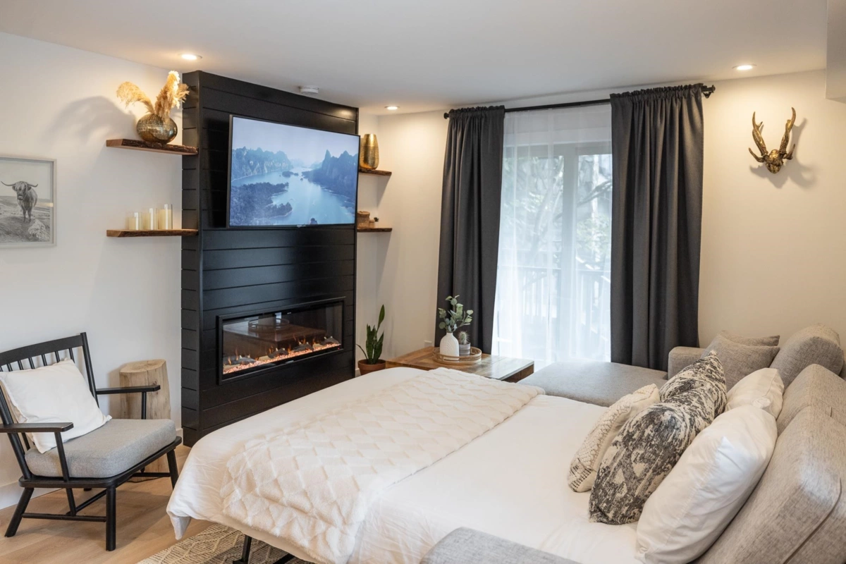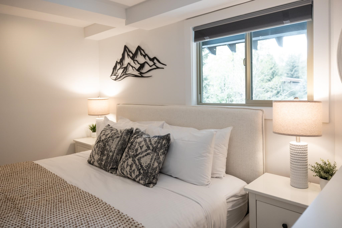 Beautifully renovated 2-bed, 2-bath ground-floor corner home only steps away from the Creekside Gondola and Nita Lake. This 792 sq. ft. home boasts a custom kitchen with ample storage, an island seating six and heated floors in both bathrooms. The living area features an electric fireplace for warmth and ambiance, while the balcony offers serene views of the pool, hot tub, and surrounding trees. Bedrooms include brand-new beds, with the primary featuring an Endy hybrid mattress, plus a custom $5K memory foam sofa bed. Move-in ready with new dishes, cutlery, and cookware. The building has been updated with a brand new common hot tub, a new roof and windows. The strata fees include hydro and hot water. This turn-key home is a must-see!