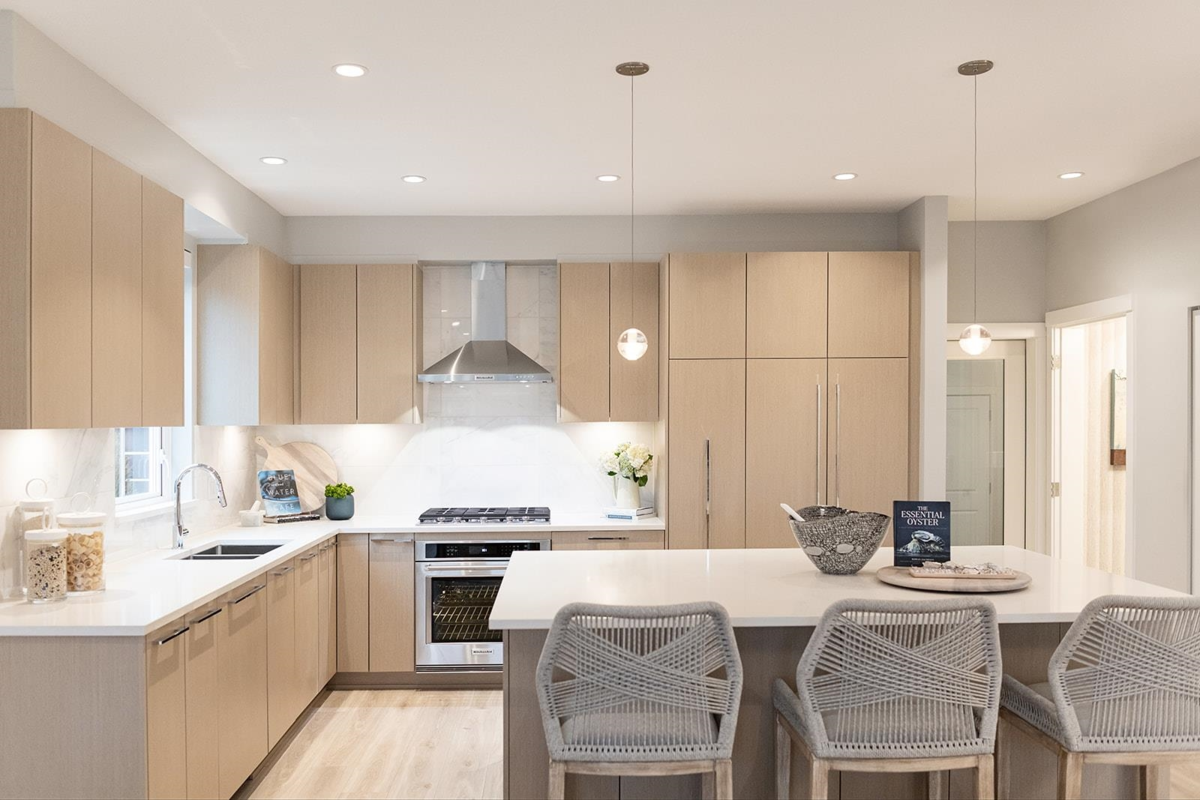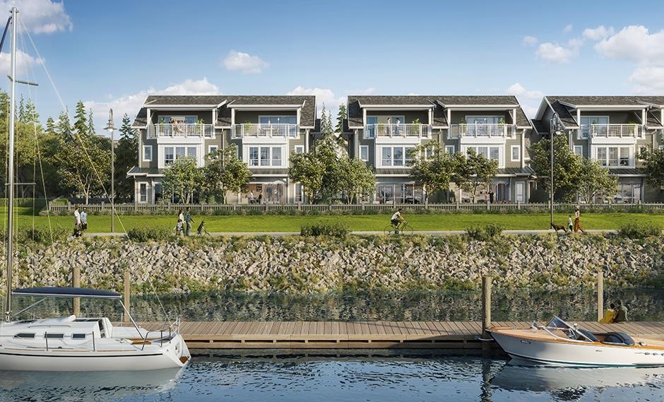 DUPLEX-STYLE 4 bed, 4.5 bath waterfront home at Westhampton by Polygon's Marinaside Collection in masterplanned community of Hampton Cove in Ladner. Enjoy 2,720 sq. ft. of living space with overheight ceilings (9', 10' + 11') on all 3 levels with beautiful water views. Integrated kitchen appliances include a wine fridge, gas cooktop and large central island. Indoor-outdoor living combined with accordion-style doors off kitchen + living area leading to a spacious patio w/ gas outlet + fenced yard. Upstairs has a recreation room + covered deck approx 13x20 w/ gas outlet for fire pit. 4 car parking with level 2 EV rough-in. AC available! Residents enjoy exclusive access to the Hampton Club - a 12,000 square foot clubhouse. Visit us at our sales office, daily except Fridays 12-6 pm.