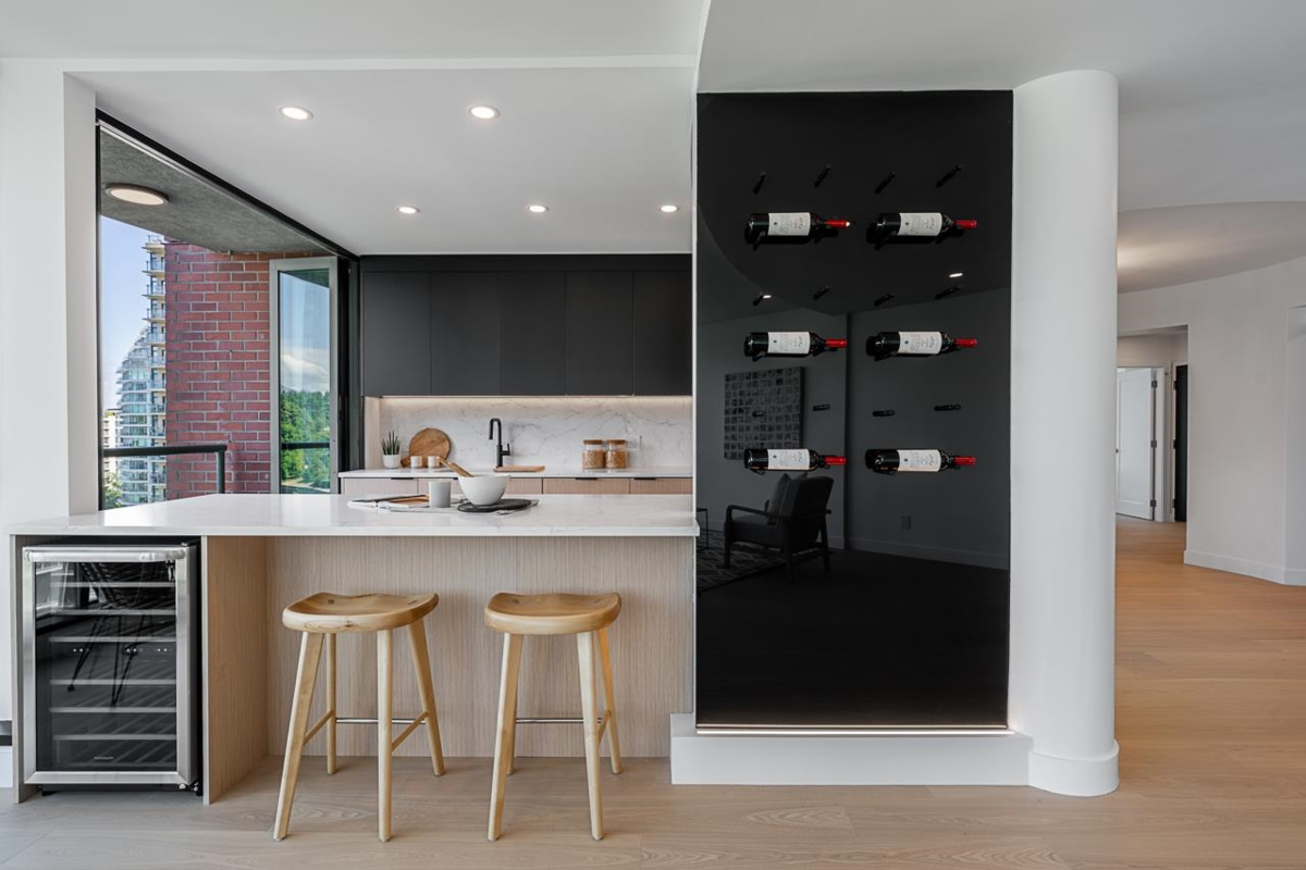 PARKSIDE LIVING - FULLY REDESIGNED & MODERN 3 BED/2 BATH ULTRA LUXURY apartment steps to STANLEY PARK. This ELEGANT and FUNCTIONAL home enjoys SWEEPING OCEAN/MOUNTAIN/CITY SKYLINE VIEWS, a sensational DESIGNER KITCHEN with an entertainment sized island & European appliances, beautiful countertops, custom cabinetry, gorgeous engineered hardwood throughout and outdoor space overlooking the city & marina. Enjoy a spacious and inviting living space featuring stunning curved glass windows with spectacular views and an adjacent dining area, perfect for entertaining! Ideally located on a quiet tree-lined street, walking distance to the Stanley Park seawall, world-class restaurants, shopping, & transportation. Building amenities: indoor pool, gym, lounge + games room. 2 parking + locker.