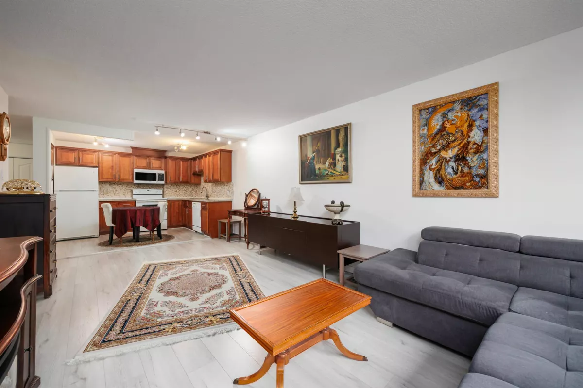 Just move in and enjoy this spacious 719 sq.ft. Condo with large covered balcony and quiet outlook to North Shore Mountain. The suit comes w/Recent Complete Renovation including: Brand New Kitchen Cabinet, Granite Countertop Stove, Fridge, Carpet, Tile Flooring inside & Balcony as well as freshly painted Walls. Functional open living area provides an exceptional floor plan and abundance of natural light. DOUBLE French doors of the master and large Walk-in-Closet. Many upgrades: plumbing, roof replacement, Parkade membrane replacement and garden renewal and elevator underway and paid for by current owners. On site management office. Short stroll to the New Lions Gate Village development with shops, grocery store and enhanced transit for downtown commuters. 1 parking and 1 locker.