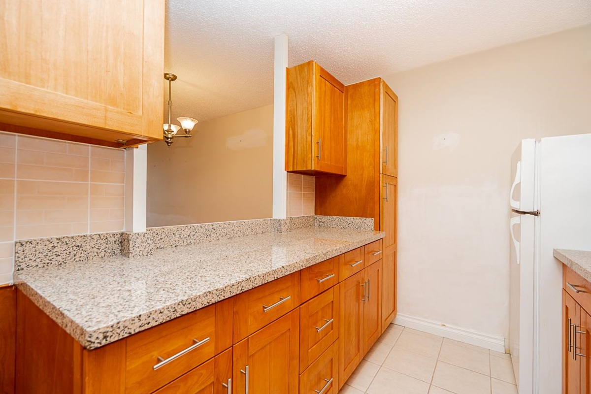 This 1 Bedroom and 1 Bathroom is in the Regency Park Towers, has all the Conveniences you need !! The building is located across Richmond Centre Mall, close to Richmond Art Centre and Richmond Aquatic Centre, Minoru Park, Richmond City Hall and a short walk to Brighouse Sky Train Station! Some Upgrades to the unit include Walk-In Bathtub and newer Vanity with Granite Countertops, newer Kitchen Cabinets with Granite Countertops, as well as Laminate Flooring. Amenities include Shared Laundry, Gym with Sauna and Jacuzzi and Room for Games and Gatherings. The Maintenance Fee is $386.63 and includes Heat and Hot Water. The Parking Stall associated with the unit is #91 and the Storage Locker is #1054. Professional Measurements done by Keyplan. Easy to show with notice.