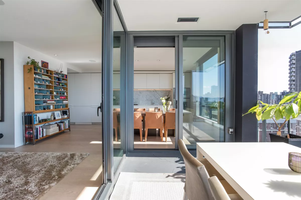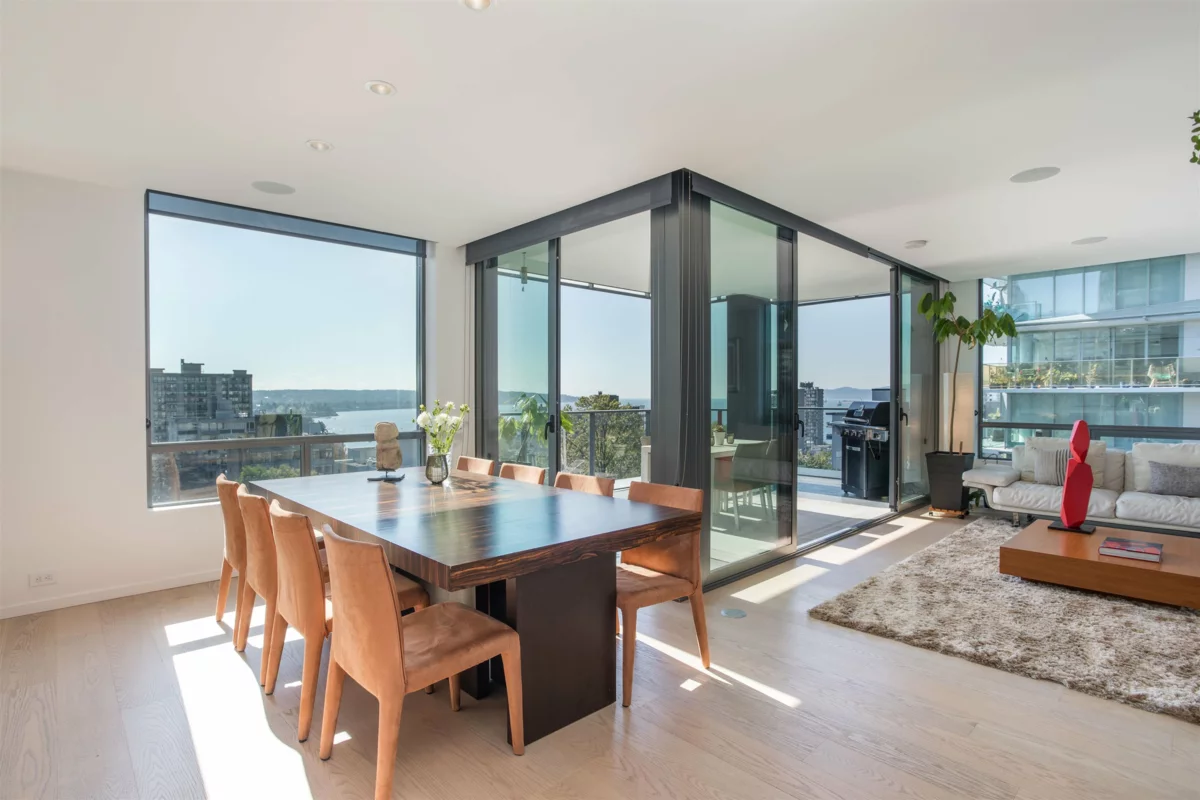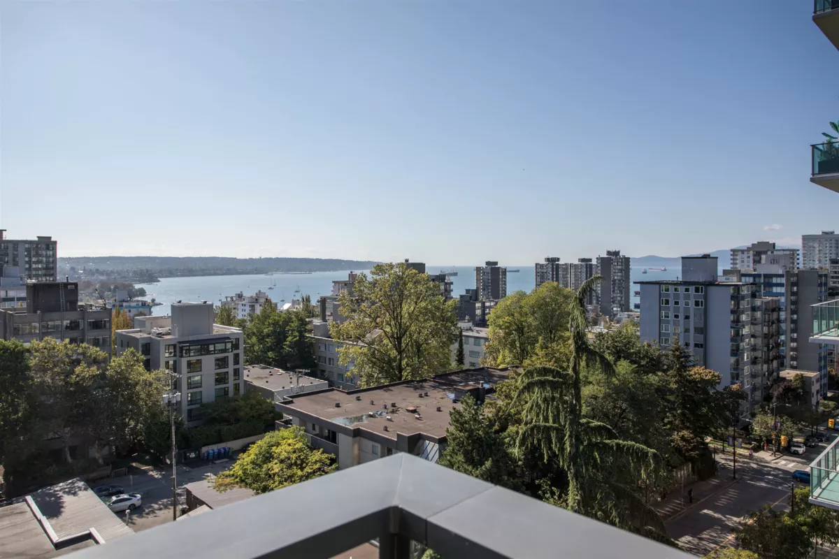 The Jervis, a collaboration w/ Intracorp Homes & Inform Interiors. This Southwest corner home enjoys a spacious interior of 1,345 sf., features a large covered view terrace, and boasts sensational views of the ocean, mountains and cityscape. The kitchen is appointed w/ TLK cabinets, Bianco Statuario marble backsplash, Gaggenau appliances & a walk-in pantry. The 2 full bathrooms are clad in white marble tile and appointed w/ Flaminia, Duravit & Gessi fixtures. The primary bedroom is complimented w/ closets by Kico Home Elements and a spa-like 5 pc ensuite. Additional features incl. recessed lighting, built-in speakers & EV compatible parking. Concierge service and & fitness room. This boutique development is a standout, and located within close proximity to beaches, parks and amenities.