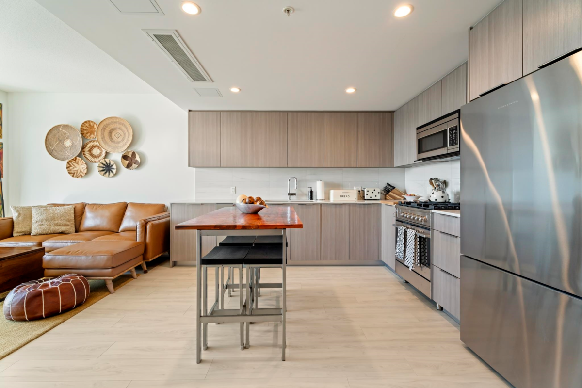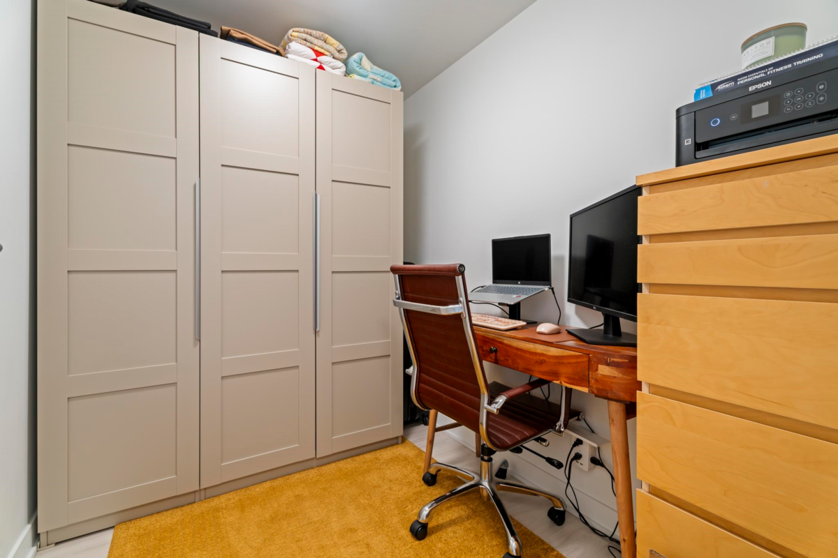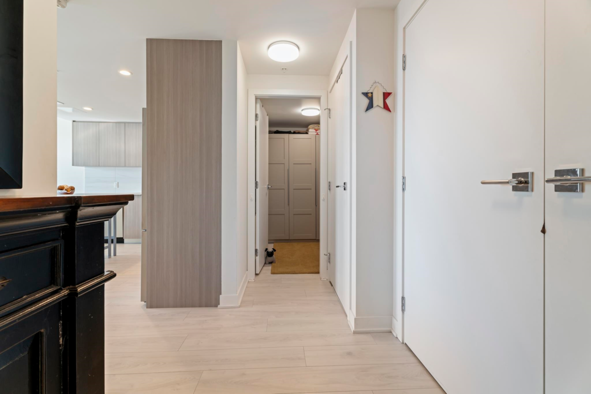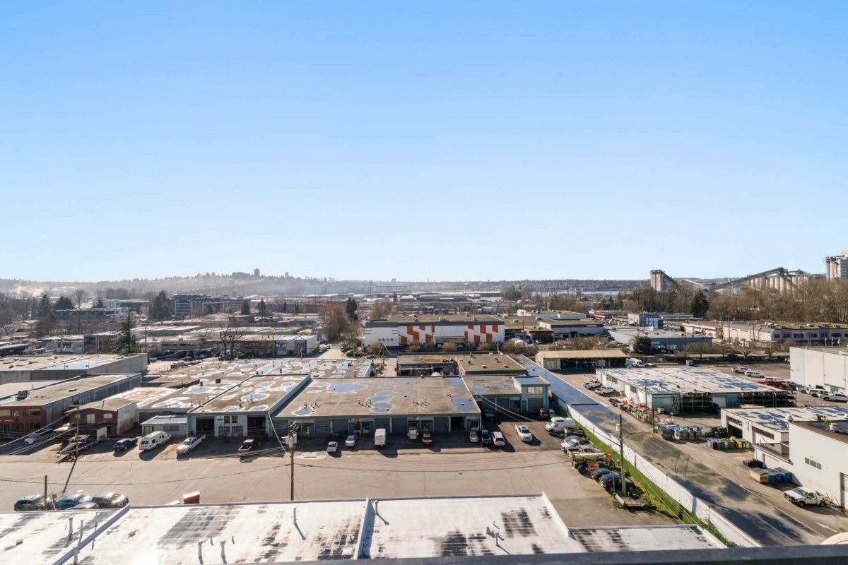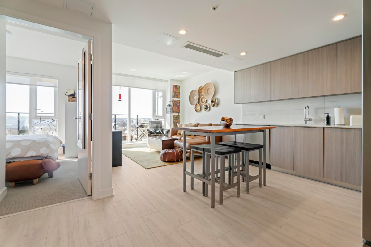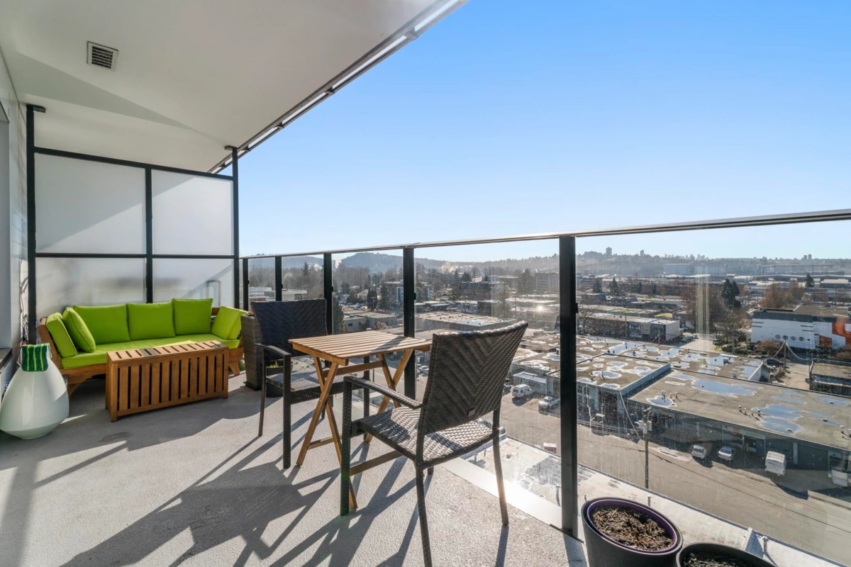 PANORAMIC VIEWS | LUXURY LIVING - Welcome to Hunter at Lynn Creek! This stunning 1 BDRM + DEN home offers breathtaking south-facing views, a spacious covered balcony, and air conditioning for year-round comfort. The sleek open-concept kitchen boasts quartz countertops, modern cabinetry, stainless steel appliances, and a gas stove-perfect for home chefs. The den is ideal for a home office, while wide plank laminate flooring adds a touch of elegance. Enjoy resort-style amenities: a gym, sauna/steam room, party lounge, BBQ area, kids' play zone, and more! Steps to Seylynn Park, Spirit Trail, rec center, shops, pharmacy, nail salon, and transit. 2 pets welcome!