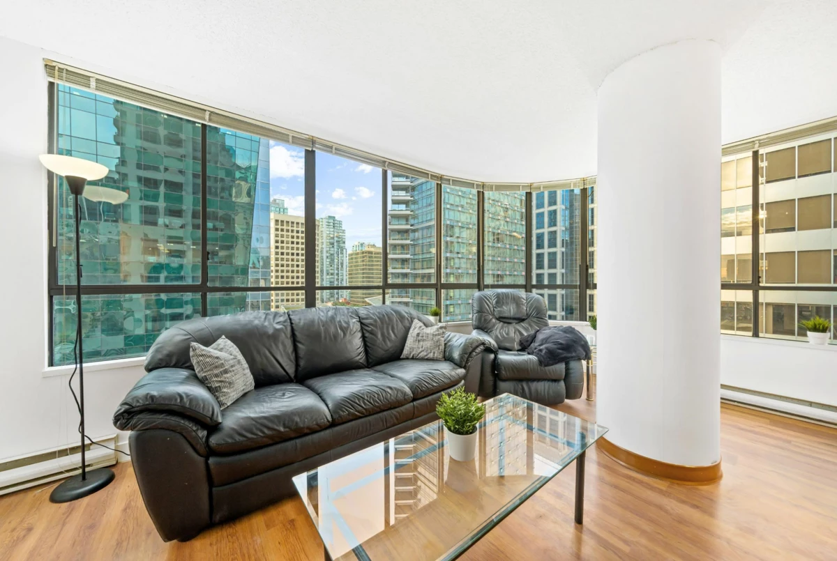 Welcome to The Carlyle - An exceptional residence located at the heart of downtown Vancouver’s 'Rodeo Drive' neighborhood. Steps from premier shopping, renowned dining, and vibrant city life!! This 1 bed corner unit has expansive windows with city views from every room, and features laminate flooring, a covered balcony, new kitchen appliances, updated lighting, & comes freshly painted! Enjoy an unmatched lifestyle, walking distance to the Seawall, Coal Harbour, SkyTrain, Robson St, Stanley Park, waterfront paths, and so much more. Well-managed building with caretaker. Amenities include: full lap indoor pool, hot tub, steam room, sauna, gym, meeting room, and newly updated outdoor courtyard. Includes 1 parking stall. See link for video tour.. *Viewings by appointment only.