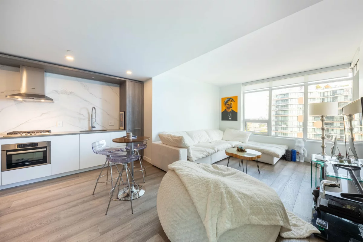 Nestled in the vibrant Miramar Village of White Rock, this bright and modern 1-bedroom suite offers a stunning view of the ocean and mountains from the private balcony. The unit is south-facing, and features an efficient layout with a contemporary kitchen designed to maximize space, complete with built-in Bosch appliances, a gas stove, quartz countertops, and a striking one-piece backsplash with LED lighting. Residents will enjoy access to top-notch amenities, including a 15,000-square-foot rooftop terrace, an outdoor pool deck, and a putting green. The building also boasts a well-equipped gym, a residents' lounge with a fireplace, TV, kitchen, outdoor BBQs and more! situated just steps away from the beach, as well as shops, groceries, and dining options. This is a must-see!