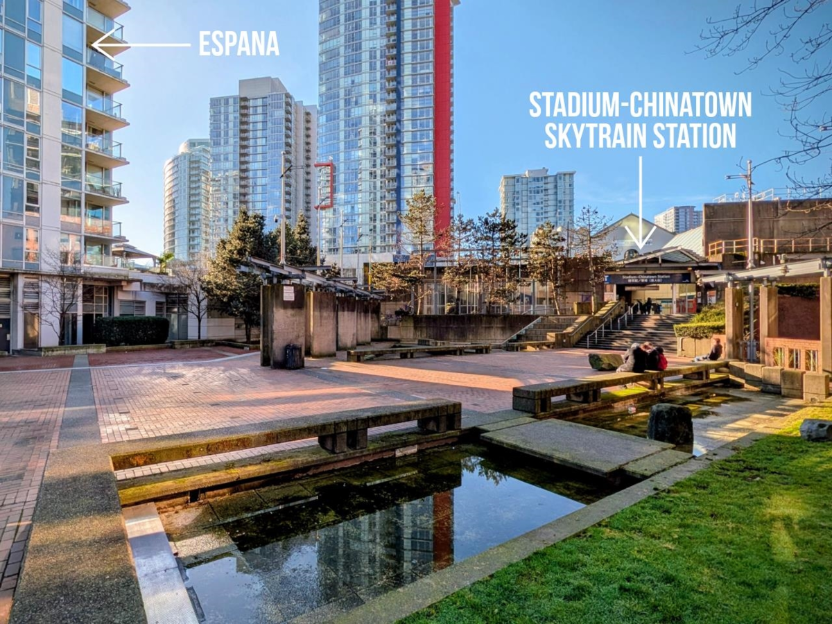 Welcome to Espana in vibrant Crosstown—steps from the stadiums, restaurants & nightlife, shopping, and the SkyTrain. This investor-friendly building permits long and short-term rentals, and its prime location close to BC Place and public transit offers strong revenue potential during the upcoming 2026 FIFA World Cup. This bright 2-bedroom, 2-bathroom corner unit has an open layout with large windows that fill the space with light. The home features a modern kitchen with stainless steel appliances and stone counters, an office/flex space, ample storage, in-suite laundry, and a balcony with city & mountain views. Over 11,000 sq.ft. of amenities: concierge, pool, sauna, whirlpool, gym, theatre, and more. 1-parking & storage locker are included. OPEN HOUSE 1:30-3:00 PM ON SATURDAY, FEBRUARY 7