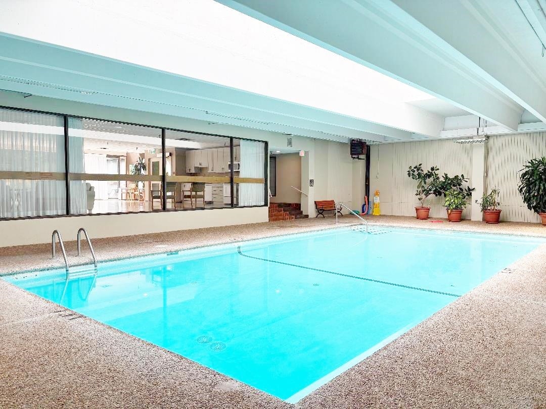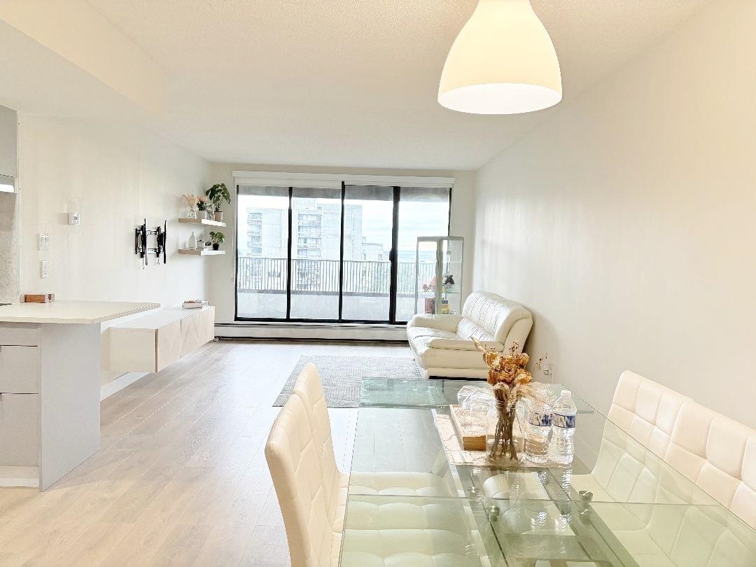 Gorgeous 903 sq.ft. condo, fully renovated and move-in ready! Enjoy a brand-new kitchen, modern bathrooms, fresh flooring, paint, carpet, lighting, and stainless steel appliances. South-facing and bright, with city views and a spacious balcony. Prime location — just steps to Central Park, Metrotown, SkyTrain, and tennis courts, combining convenience with quiet residential living. Fantastic building amenities: indoor pool, hot tub, sauna, gym, workshop, games room, squash/racquetball courts, kids’ playroom, library, and rooftop deck. Includes 2 parking stalls + 1 storage locker. Don’t miss this one — book your showing today! Open house Jan. 18th Sunday from 1:00 to 4:00 PM.