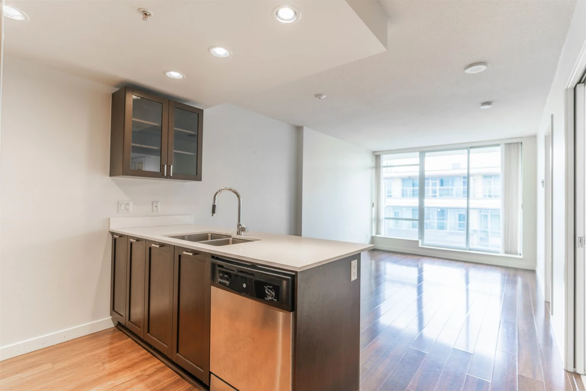 Welcome to 4815 Eldorado Mews, a quality Wall Financial development! This rare open layout 1-BEDROOM + FLEX unit is spacious and quiet, ideal for personal enjoyment or as an investment. Featuring a stunning chef's kitchen with granite countertops, stainless steel appliances, and beautiful laminate hardwood flooring. Located in a culturally diverse neighborhood, steps from TnT Supermarket, bus stops, restaurants, and Shoppers Drug Mart. It's about 6 blocks from Nanaimo Skytrain Station for added convenience. Amenities include a fully equipped fitness center, lounge, and garden deck, all in a secure setting.