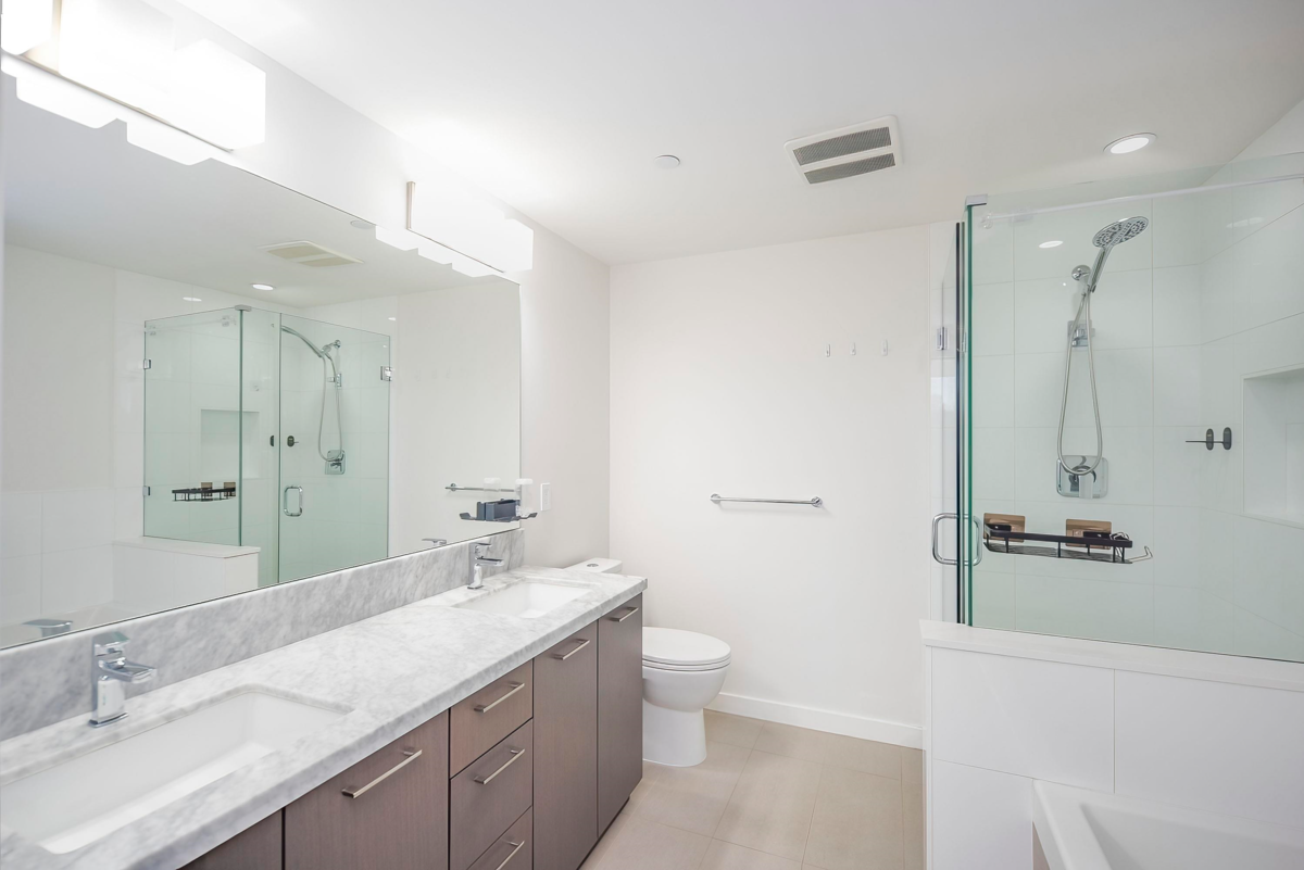 Parkside at Victoria Hill by Onni Group. New Westminster's best master-planned community with over 40 acres of dedicated green space, 120 species of old growth trees, breathtaking views and easy access to Queen's Park. Parkside offers over 5,400 sq ft of private indoor and outdoor amenity space, including a professionally-equipped fitness studio, guest suites, party room, games room, mutiple bike rooms, outdoor pool and hot tub. This is a spacious 1,004sf 2bd+2ba corner unit with a private covered balcony showcasing North-West-South views, bedrooms on the oppsite sides, second bedroom has private access to the balcony, bright open concept design, Two side by side Parkings and 1 locker included.